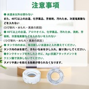 水中に溶出した抗菌成分が、タンク内の雑菌の繁殖を抑えます。*40℃以上のお湯や汚れた水、ミネラルウォーター、アルカリイオン水、井戸水、浄水器の水などを使用しないでください。雑菌やカビが繁殖しやすくなったり、変形・割れ(水漏れ)・故障の原因になります。