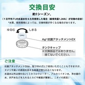 Ag+抗菌アタッチメントH011500の交換目安は約1年に1回。タンクキャップは交換部品ではありません。捨てないでください。