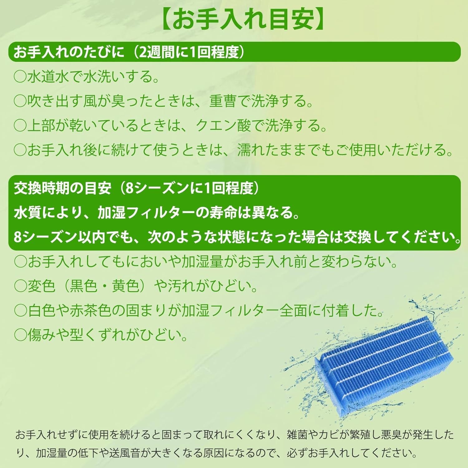 加湿フィルターの交換をおすすめします。