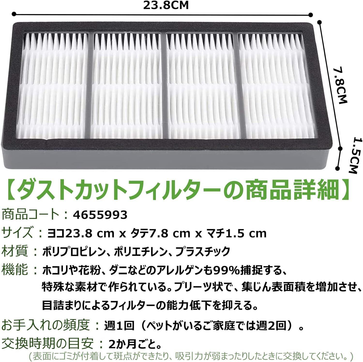 メンテナンス目安 ダストカットフィルター(4655993):週1回清掃(ペットありは週2回)、約2か月ごと交換