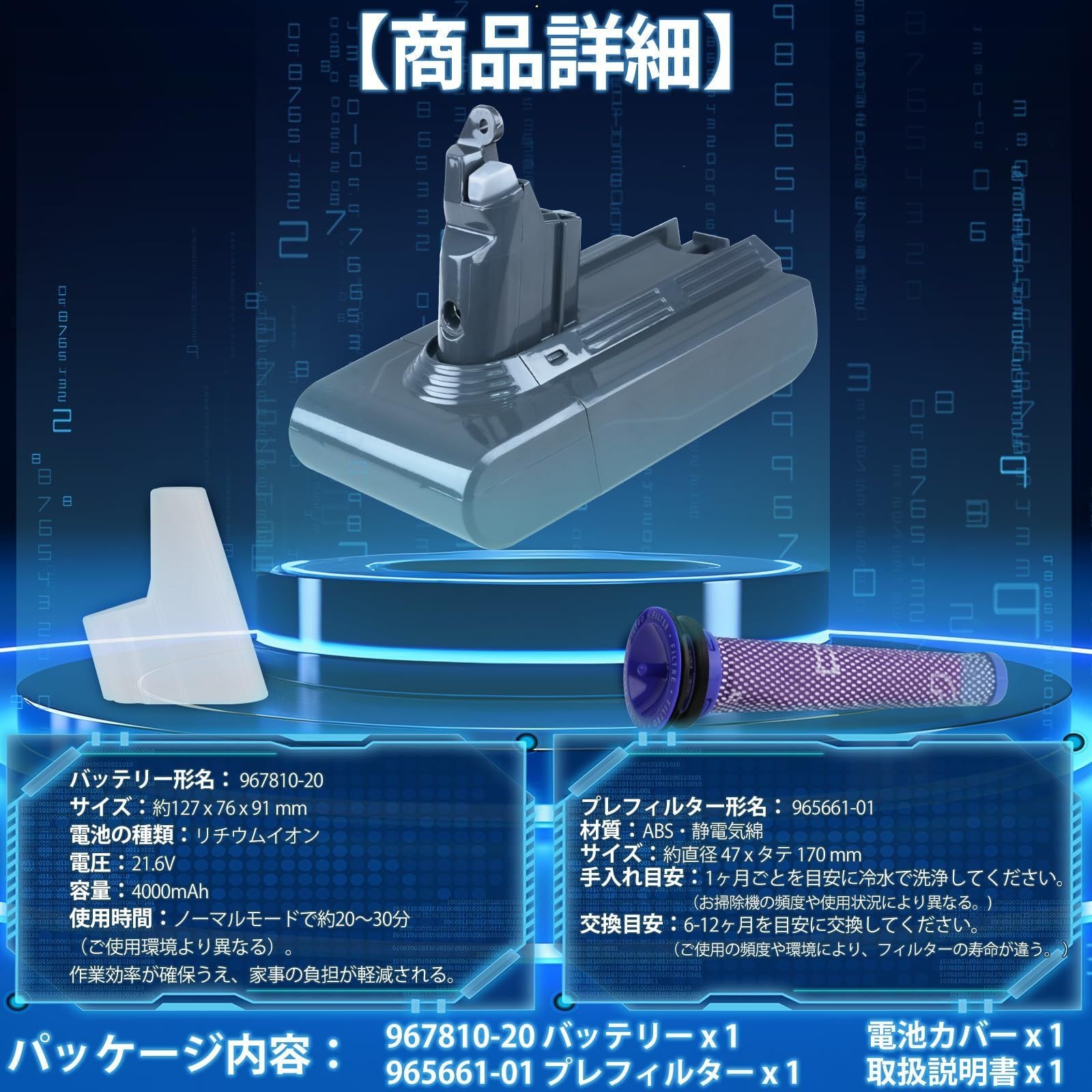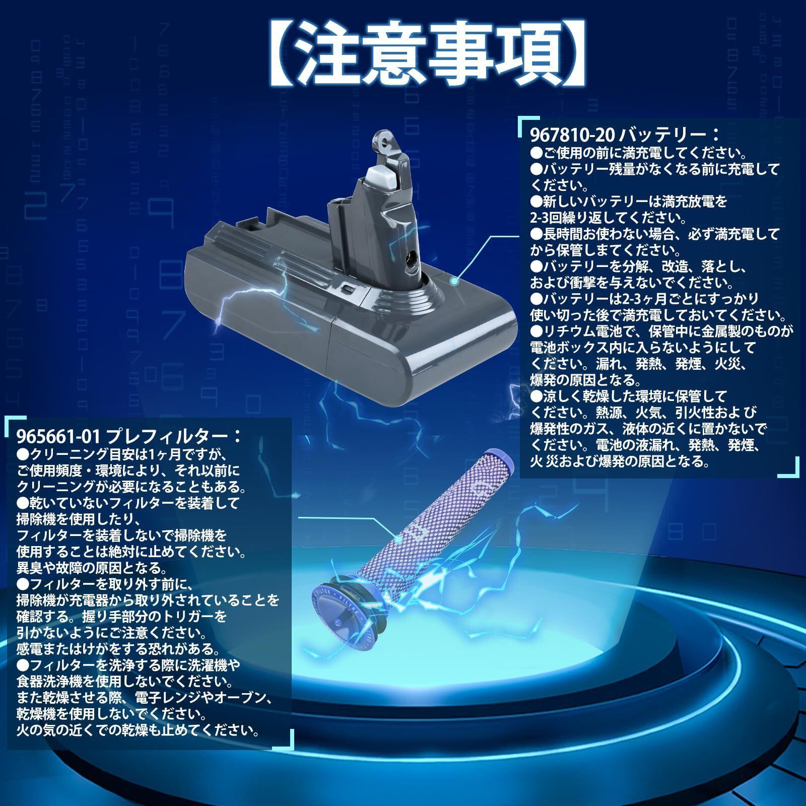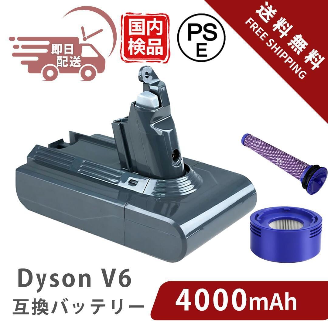 ダイソン v6 バッテリー 掃除機用 ダイソンv6バッテリー 【PL保険(1億円補償)】967810-20 バッテリー 965661-01 プレフィルター DC62 DC61 DC63 DC59 DC58 SV07 SV06 SV05 SV04 SV03 SV08 4000mAh 大容量 バッテリー 保護回路搭載 PSE認証済み バッテリー交換 互換 | ベスター本舗