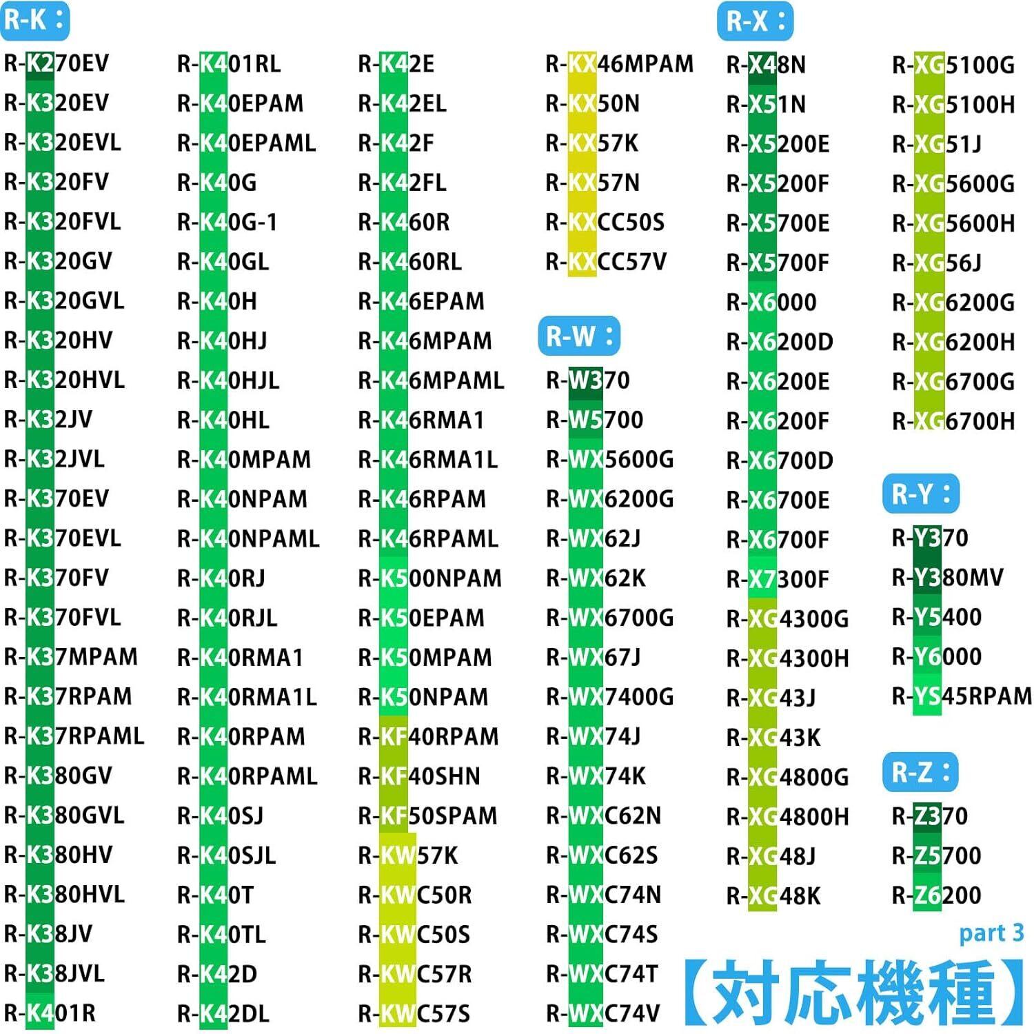対応機種 R-HW60K / R-HW60N / R-HW60R / R-HW62S / R-HWS47K / R-HWS47KC / R-HWS47KCL / R-HWS47KL / R-HWS47N / R-HWS47NL / R-HWS47R / R-HWS47RL / R-HWS47S / R-HWS47SL / R-HWSCC47S / R-HWSCC47SL / R-HX52N / R-HX54R / R-HX60N / R-HX60R / R-HXCC54S / R-HXCC62S / R-J44MV / R-J44MVL / R-K270EV / R-K320EV / R-K320EVL / R-K320FV / R-K320FVL / R-K320GV / R-K320GVL / R-K320HV / R-K320HVL / R-K32JV / R-K32JVL / R-K370EV / R-K370EVL / R-K370FV / R-K370FVL / R-K37MPAM / R-K37RPAM / R-K37RPAML / R-K380GV / R-K380GVL / R-K380HV / R-K380HVL / R-K38JV / R-K38JVL / R-K401R / R-K401RL / R-K40EPAM / R-K40EPAML / R-K40G