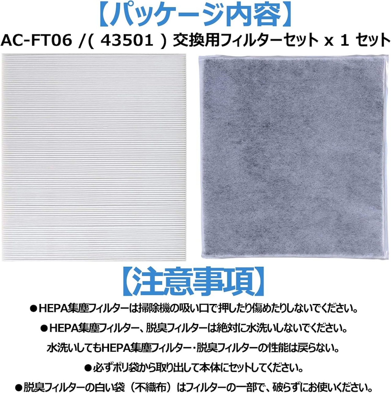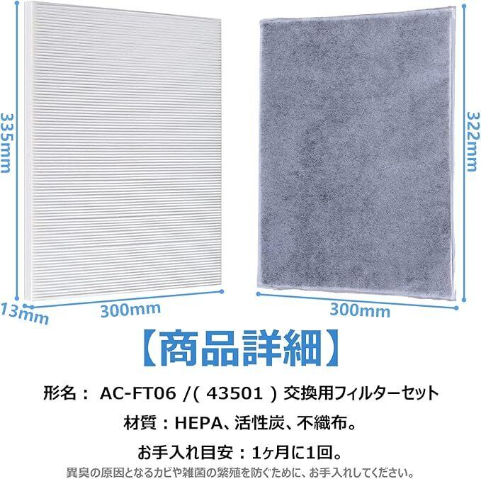 AC-FT06 ツインバード空気清浄機 互換フィルター AC-FT06 HEPA 集じんフィルター 脱臭フィルター 2枚入りセット AC-4238 AC-4357 AC-5943 AC-D358 交換用フィルター 互換品 | ベスター本舗