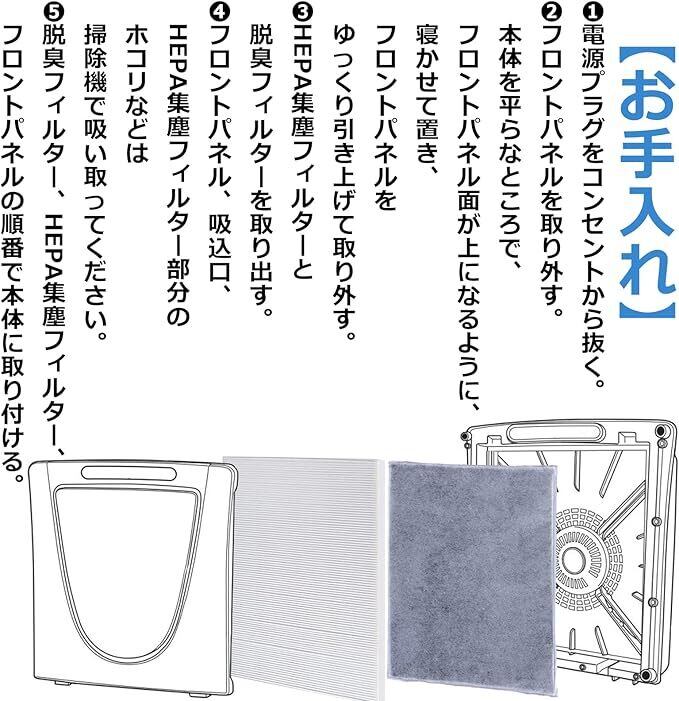 ・脱臭フィルターには活性炭を使用し、タバコ臭・ペット臭・生活臭などのニオイ成分を吸着。