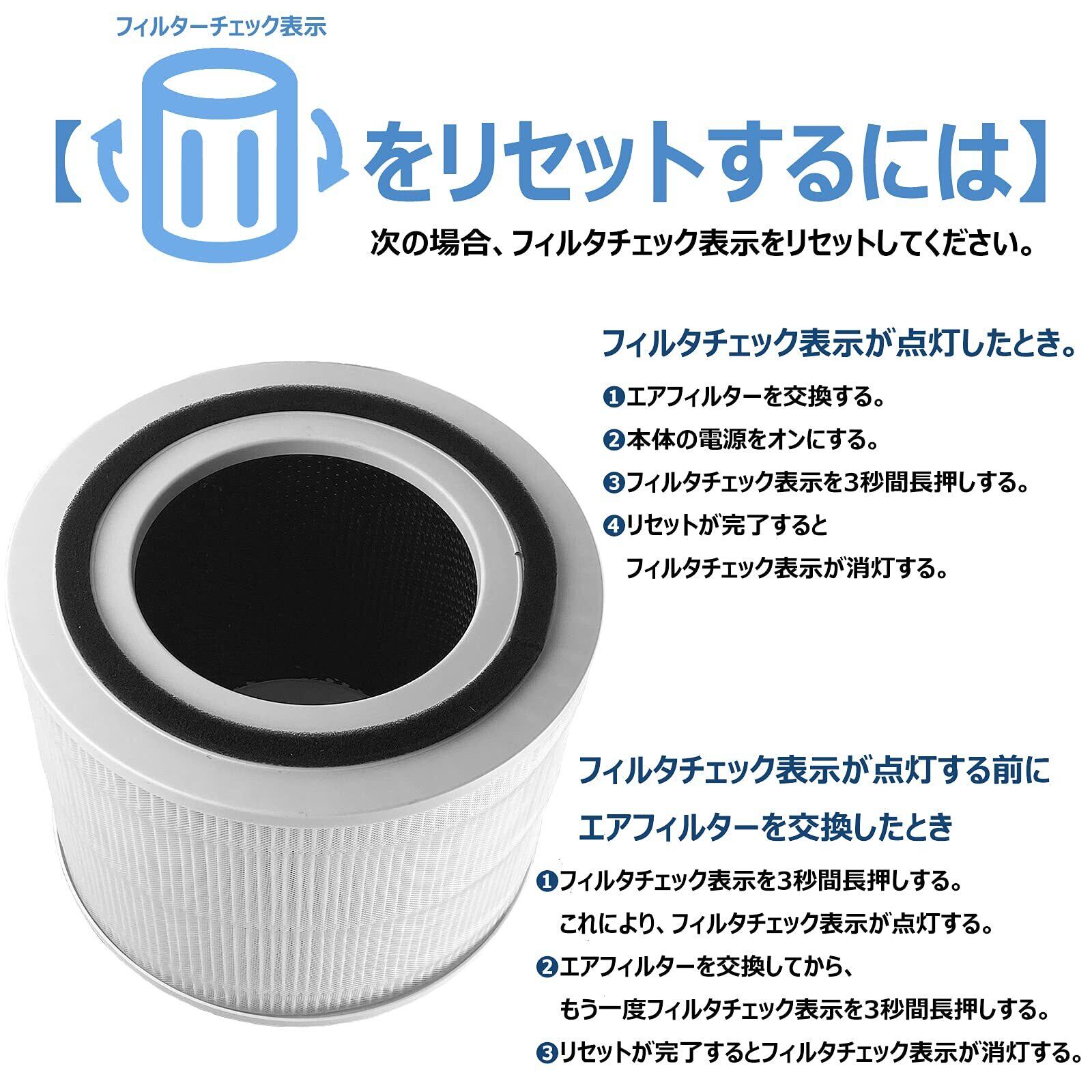 ●フィルターチェック表示が点灯していなくても、ニオイや性能低下を感じた場合は早めの交換をおすすめします。