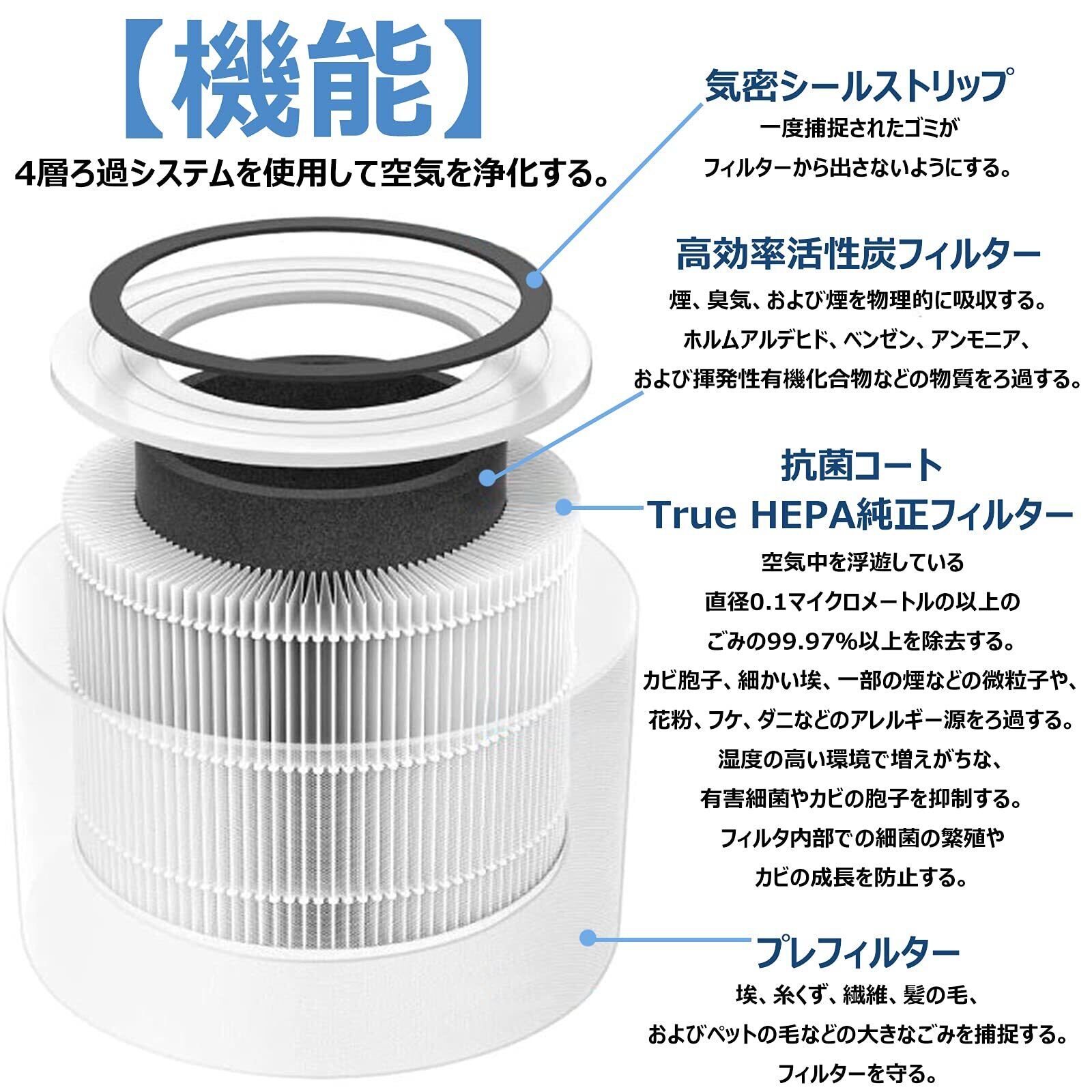 機能 プレフィルター / HEPAフィルター / 抗菌コート / 高効率活性炭フィルター