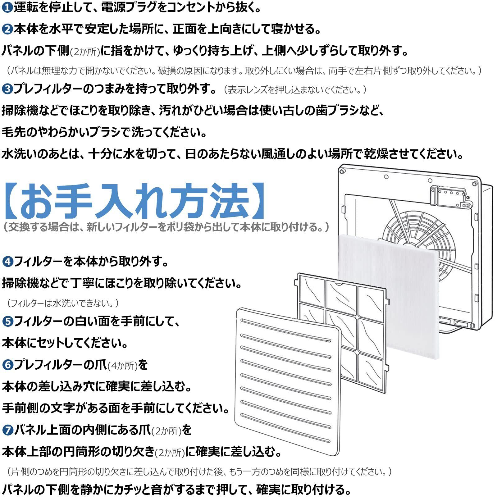 約2年。設置場所やご使用状況によって、使用期間が短くなる場合がある。フィルターは消耗品であり、ご使用とともに汚れやにおいを取る能力は低下する。汚れやにおいが取れにくくなった場合は、早めにフィルターを交換してください。そのまま使用すると、フィルターからにおいが発生することがある。