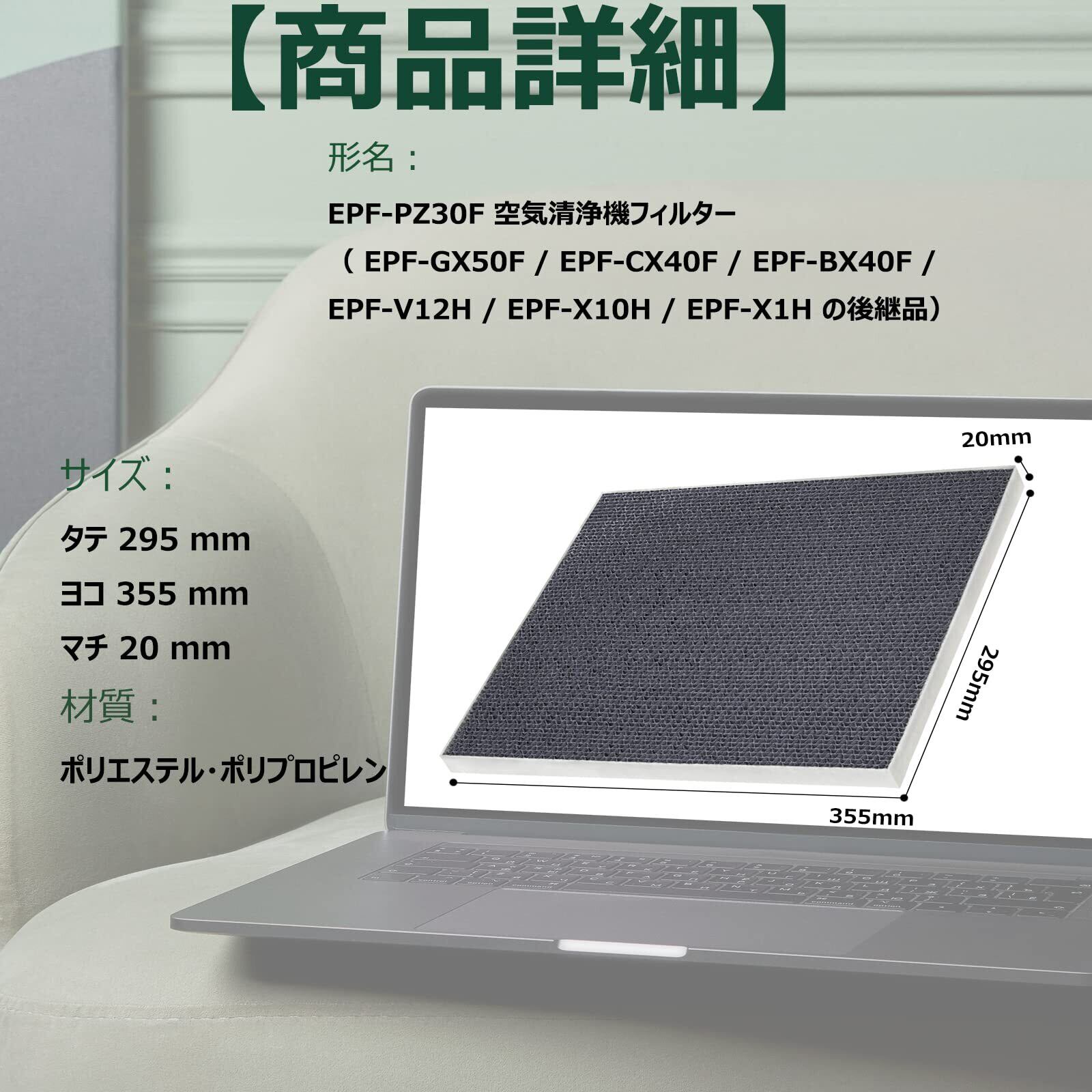 EPF-PZ30F 空気清浄機用脱臭・集じん一体フィルター 。材質:ポリエステル・ポリプロピレン。