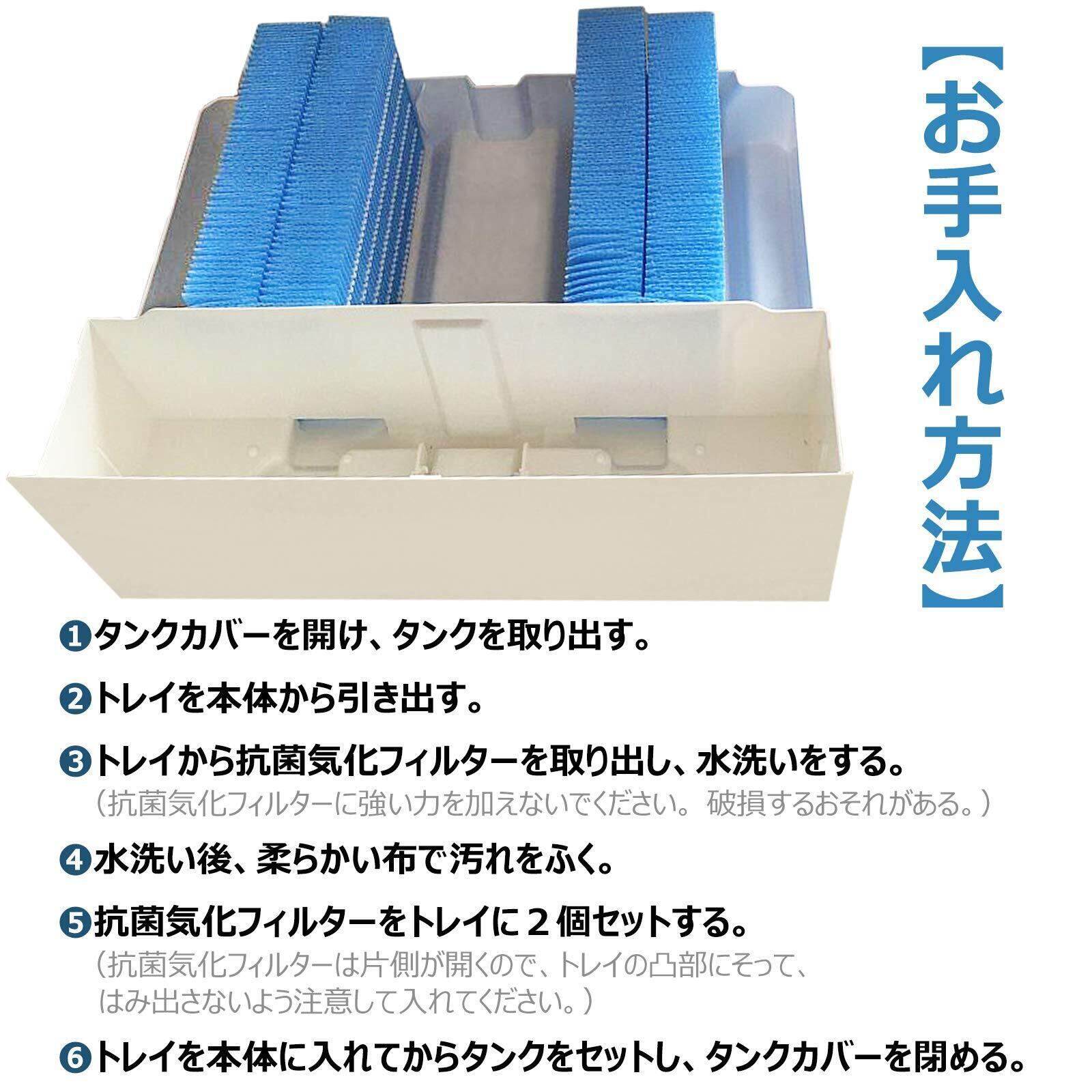 約2週間。お手入れせずに使用を続けると固まって取れにくくなり、雑菌やカビが繁殖し悪臭が発生したり、加湿量の低下や送風音が大きくなる原因になるので必ずお手入れしてください。