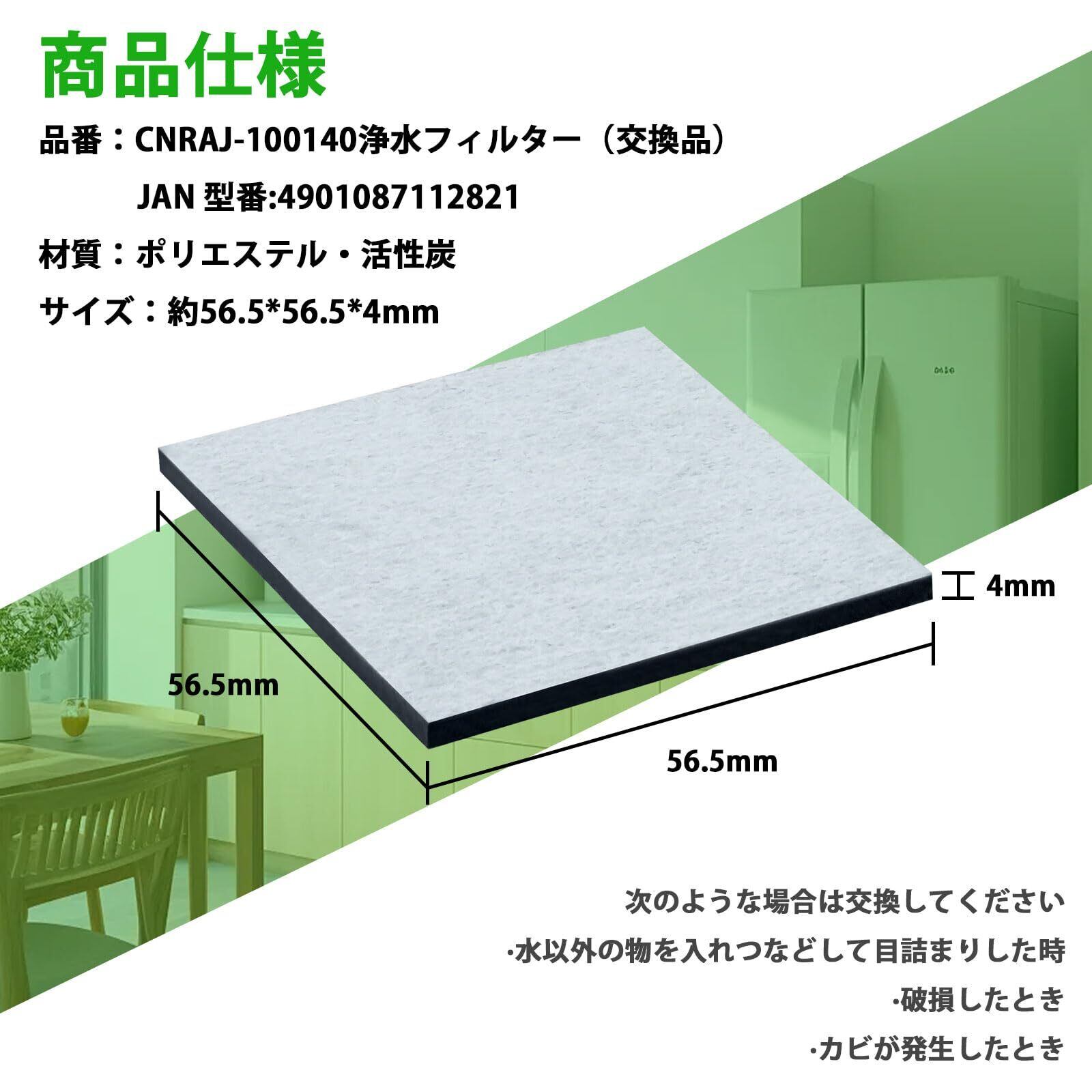 CNRAJ-100140H 冷蔵庫浄水フィルター 自動製氷用 製氷フィルター CNRAJ100140H 4901087112821 浄水フィルターマット型正方形 NR-D36M1 NR-D42M1 NR-E40S1 NR-E40S2 NR-E45M1 ナショナル冷蔵庫用 | ベスター本舗