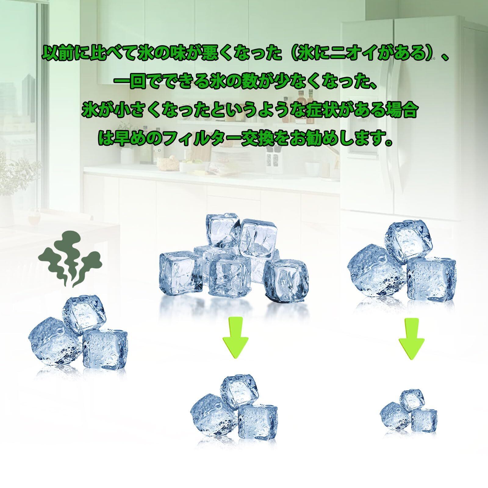 1週間に1、2回。浄水フィルターに水あかなどが詰まっていると製氷できないことがある。