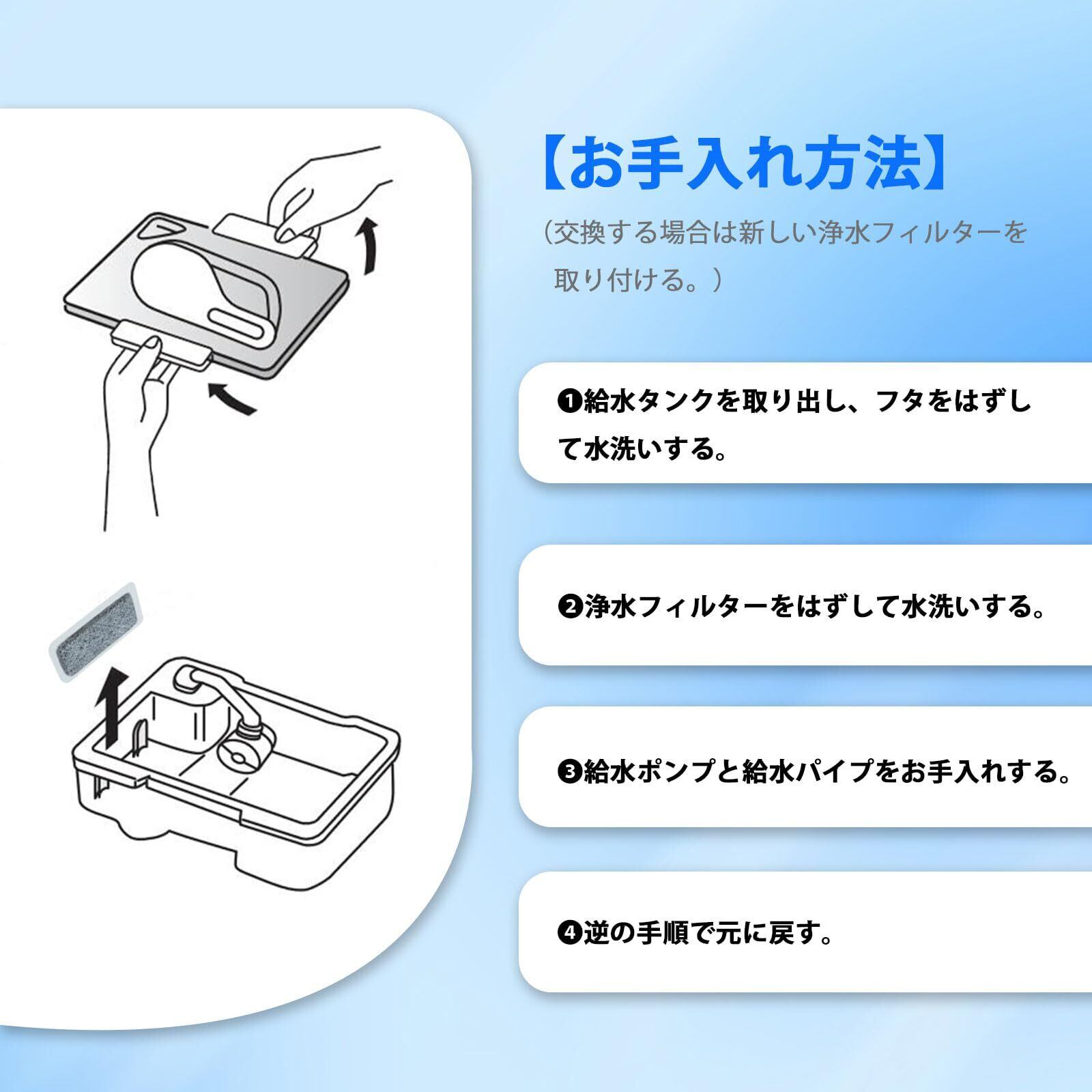 ★1週間に1回。水の種類によってカビが発生しやすいときは週に 2、3 度お手入れしてください。