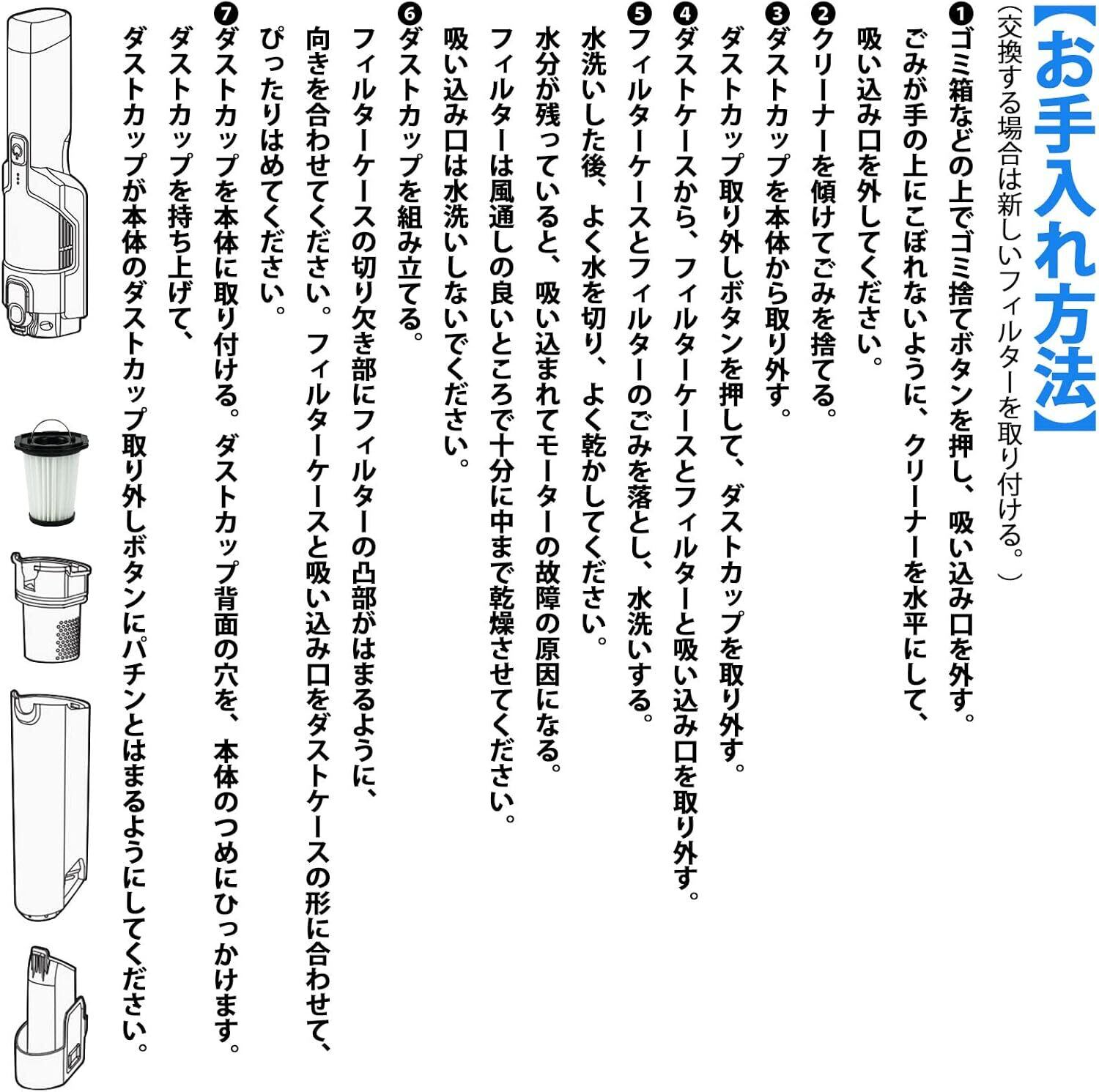 【メンテナンス】吸引力が弱い、運転音が大きい時、軽く叩いてホコリを落として、HEPAフィルターを水で洗って、風通しがよい場所で十分に乾燥させてください。目詰まりする時、HEPAフィルターの交換をオススメ。
