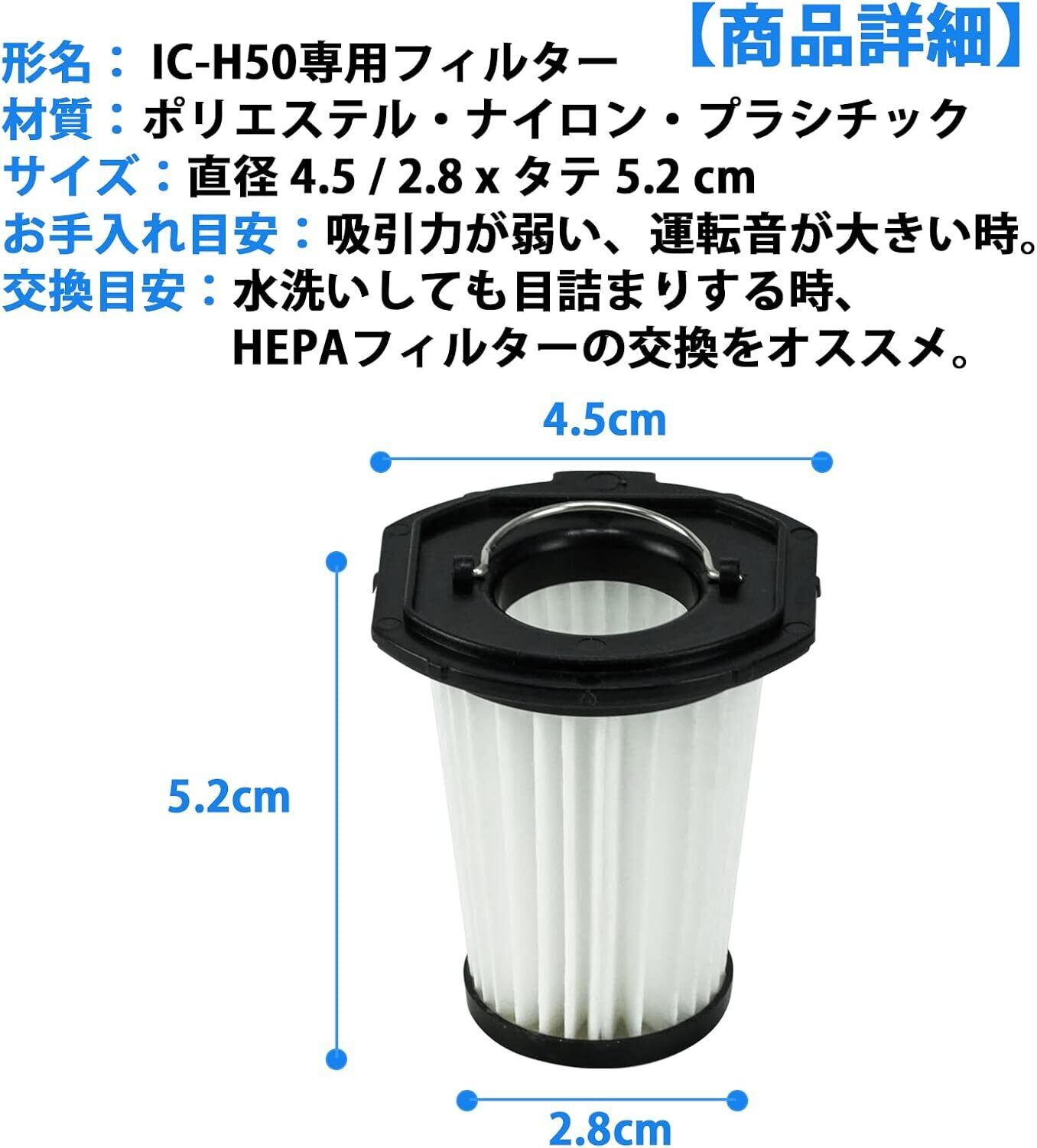 【形名】 充電式ハンディクリーナー IC-H50専用のフィルター 。材質:ポリエステル・ナイロン・プラシチック。