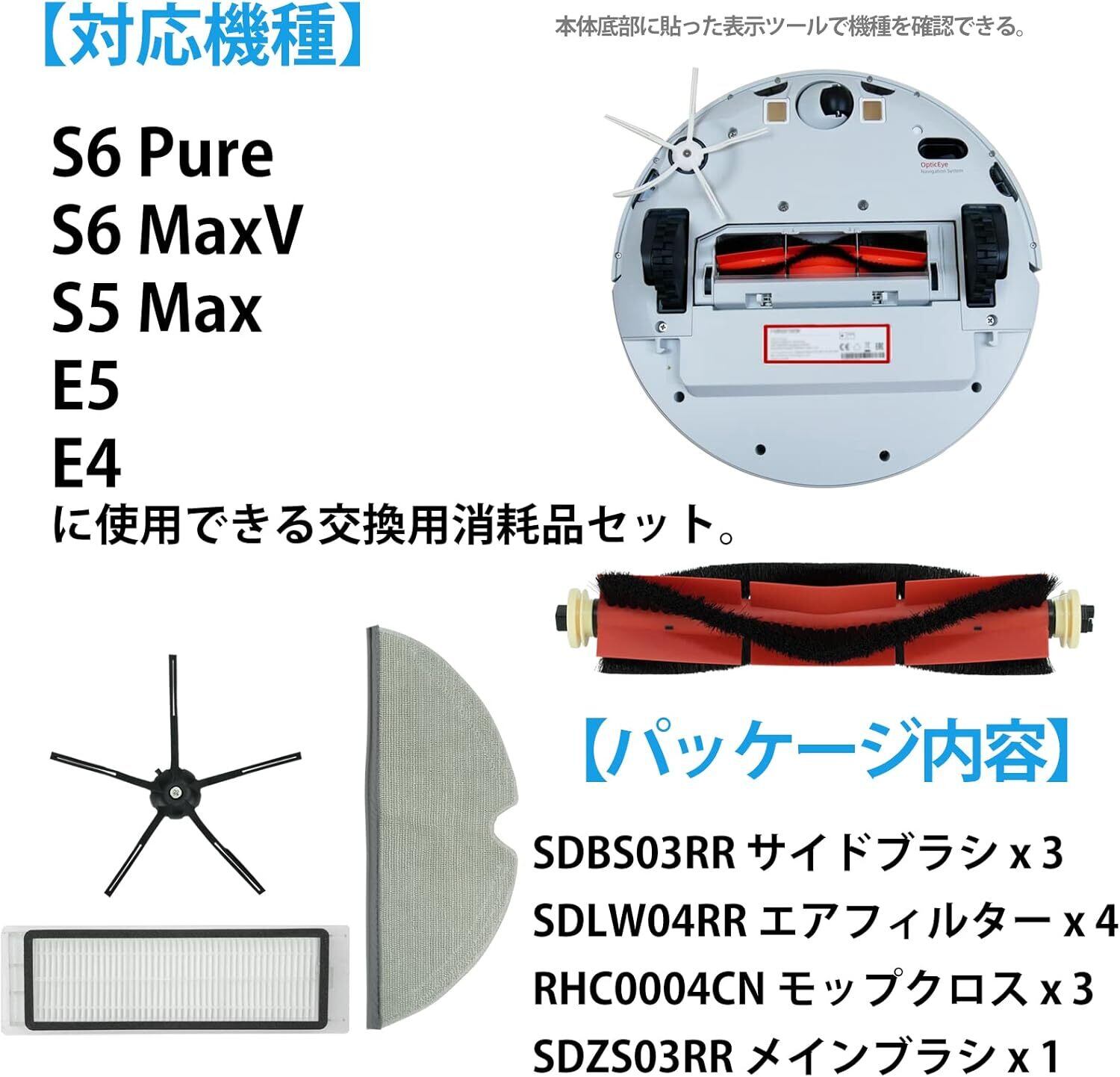 E5 ロボット掃除機 アクセサリーセット E4 サイドブラシ S6 Pure モップクロス S6 MaxV メインブラシ S5 Max エアフィルター モップ フィルター 11点セット | ベスター本舗