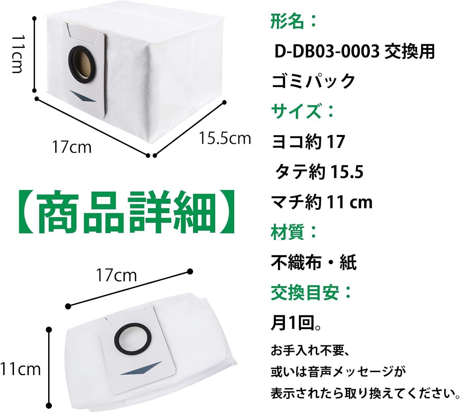 【形名】 D-DB03-0003 交換用ゴミパック 。材質:不織布・紙。
