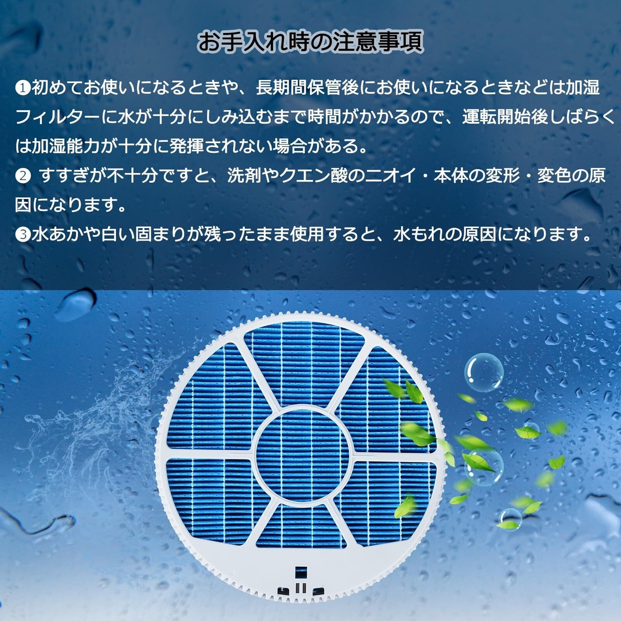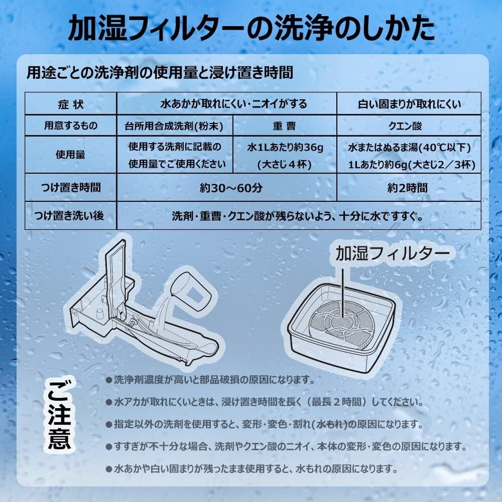 加湿フィルターの交換目安は約5~10年に1回。水質により加湿フィルターの寿命は異なります。