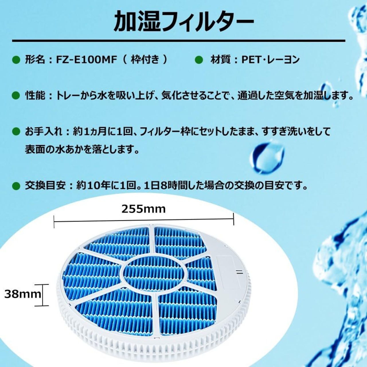 互換品・1個入り:加湿空気清浄機交換用加湿フィルターFZ-E100MFの互換品です。※フィルターは枠にセットして発送させて頂きます。