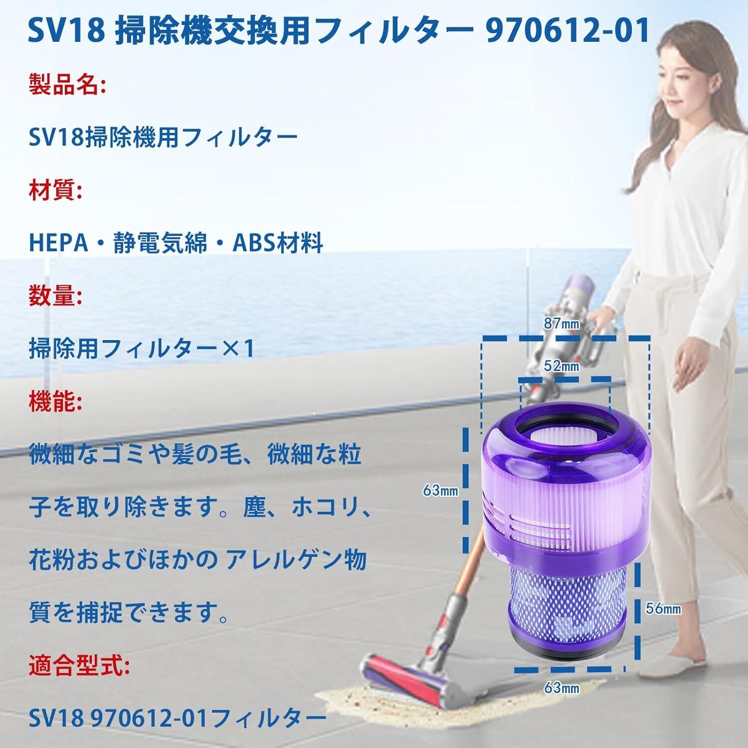 【メンテナンスやすい】フィルターSV18は洗濯できます。定期的に洗浄する必要があります。お掃除の頻度や使用状況により異なります。長期に使うと、フィルターが詰まったり、臭く なったりすることがございます。 最低でも1か月毎を目安に洗浄してください。