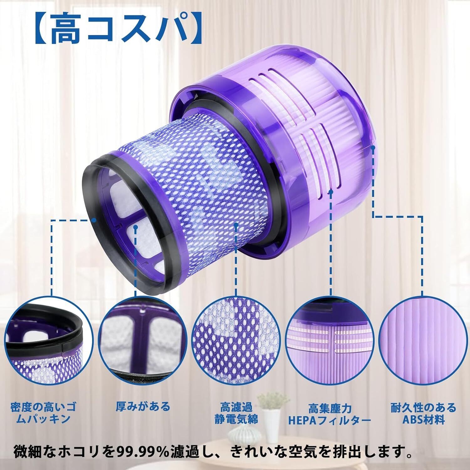 【高品質な材質】採用した静電気綿の材 効料はより多くのほこりを收容し、フィルターの效率を向上させることができます。高品質 なHEPAフィルターを採用しており、0.3ミクロンの微細な粒子を99.99%捕らえられますから、細かい粒子、ほこり、花粉などを効率的に阻止します。
