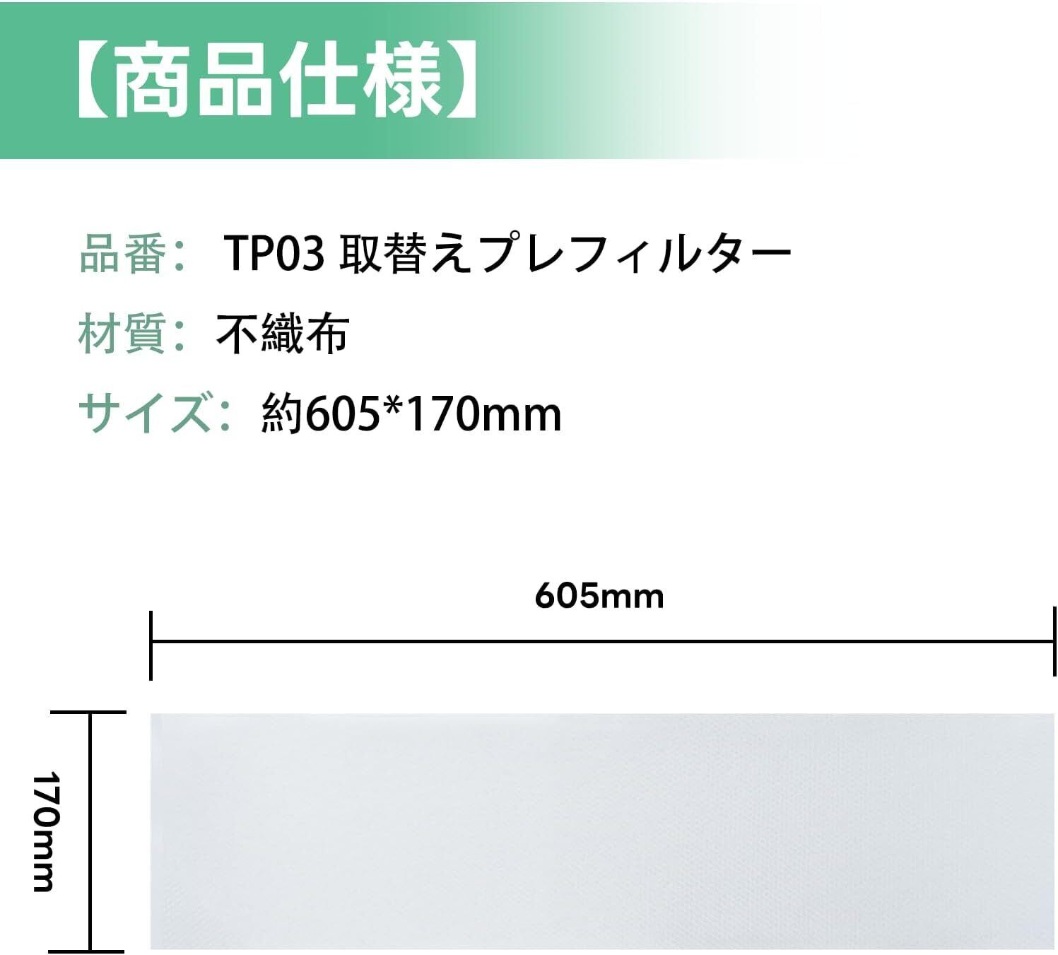 【形名】TP03取替えプレフィルター 材質:ポリエステル・ポリプロピレン 寸法:(幅×高さ) 605*170mm