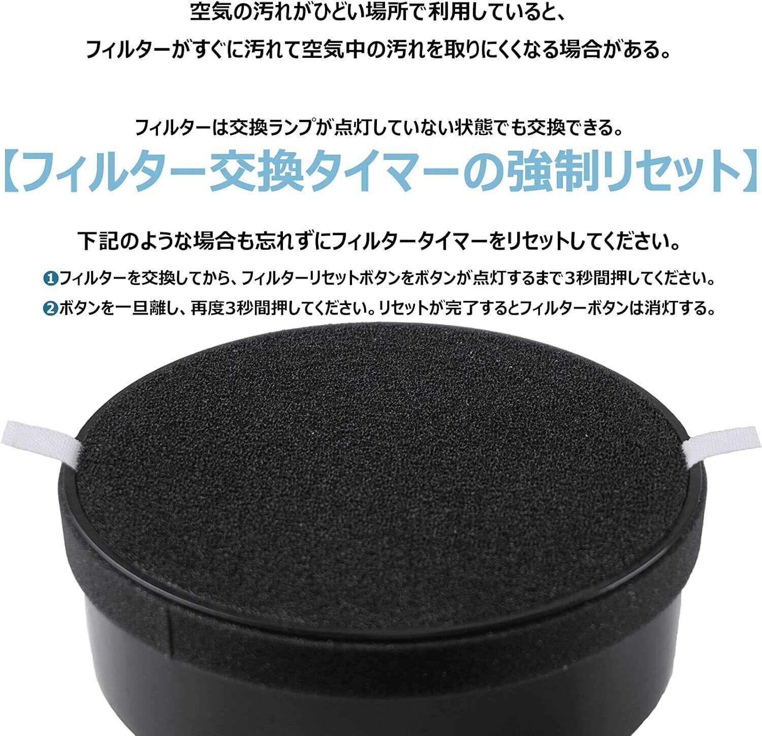 【活性炭フィルター】空気中の有害物質、料理臭、ペット臭などを取り除きます。
