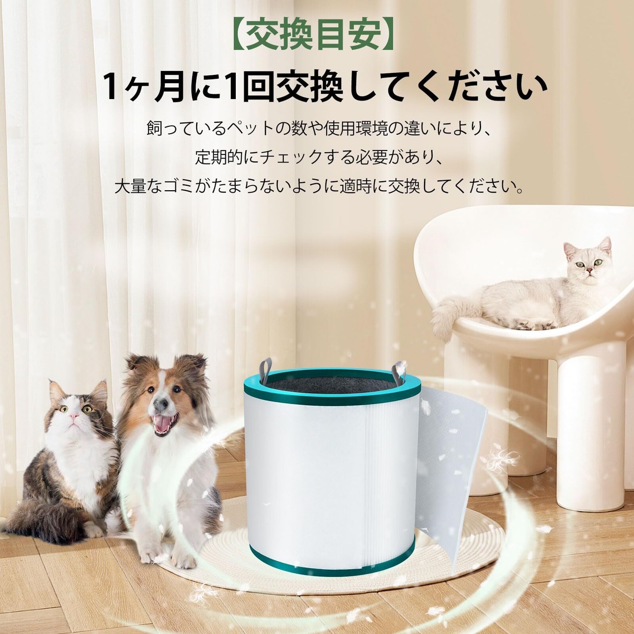 1ヶ月に1回交換してください。飼っているペットの数や使用環境の違いにより、定期的にチェックする必要があり、大量なゴミがたまらないように適時に交換してください。お手入れの目安:静電取替えプレフィルターは使い捨てで、お手入れが不要です。