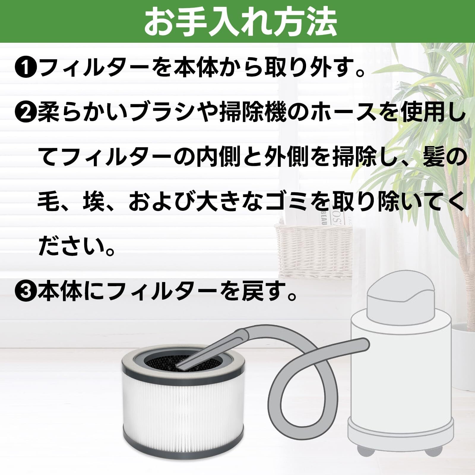 フィルターの寿命をより長くするためには、定期的に掃除を行ってください。