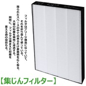 PM2.5、花粉、アレル物質(ダニのふん・死がい)、カビ菌、ホコリ・チリ、タバコの煙(粒子)、ペットの毛などを捕集する。