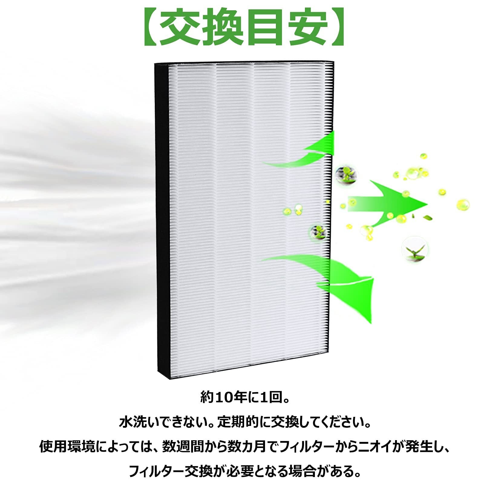 ※交換時期は、使いかたや設置場所により異なる。空気の汚れが多いところでご使用の場合は、交換時期が早くなる。効果がなくなってきたときは交換してください。