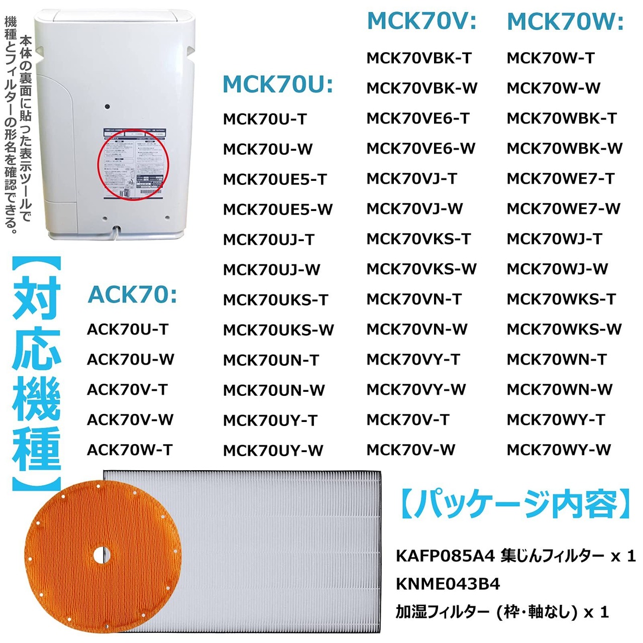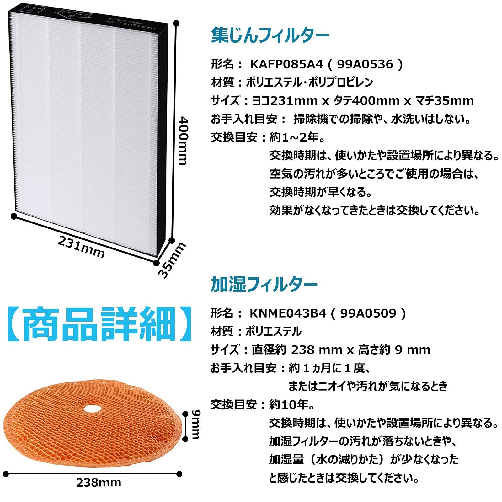 \★今だけ\最大20%OFFクーポン★/ KAFP085A4 KNME043B4 加湿フィルター 集塵フィルター 空気清浄機 フィルター空気清浄機用交換フィルター ACK70 MCK70W MCK70V MCK70U対応 99A0509 99A0536【互換品】1セット入り | ベスター本舗
