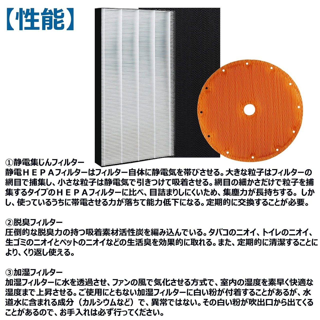 集塵フィルター KAFP029A4 / 加湿フィルター KNME017C4 ( KNME017B4 / KNME017A4 ) / 脱臭フィルター 2074191 。材質:ポリエステル・ポリプロピレン・活性炭。