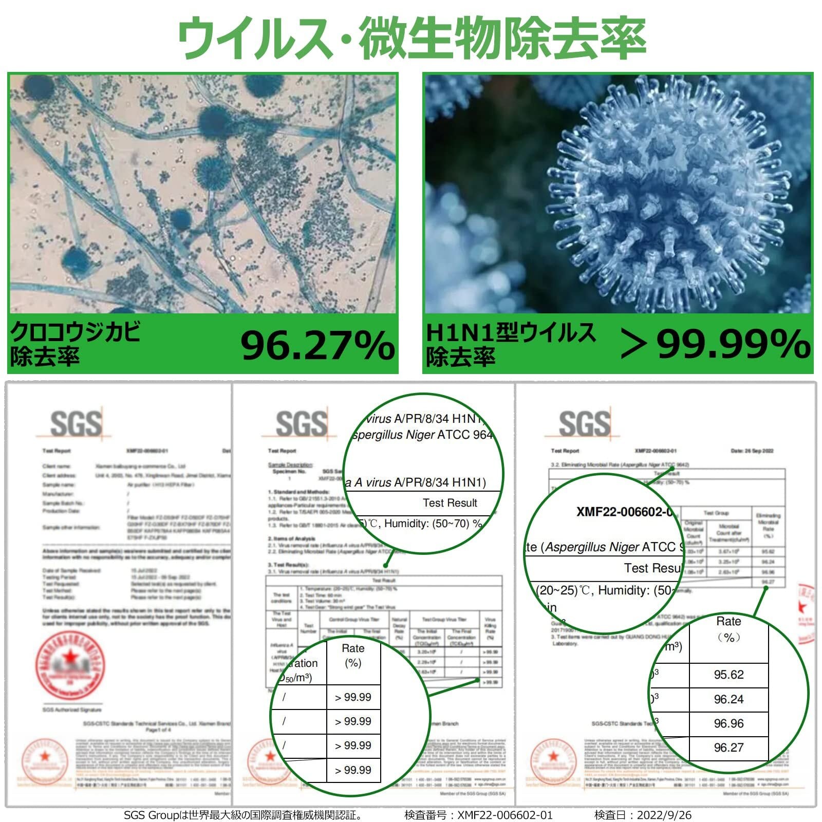 PM2.5、花粉、アレル物質(ダニのふん・死がい)、カビ菌、ホコリ・チリ、タバコの煙(粒子)、ペットの毛などを捕集する。