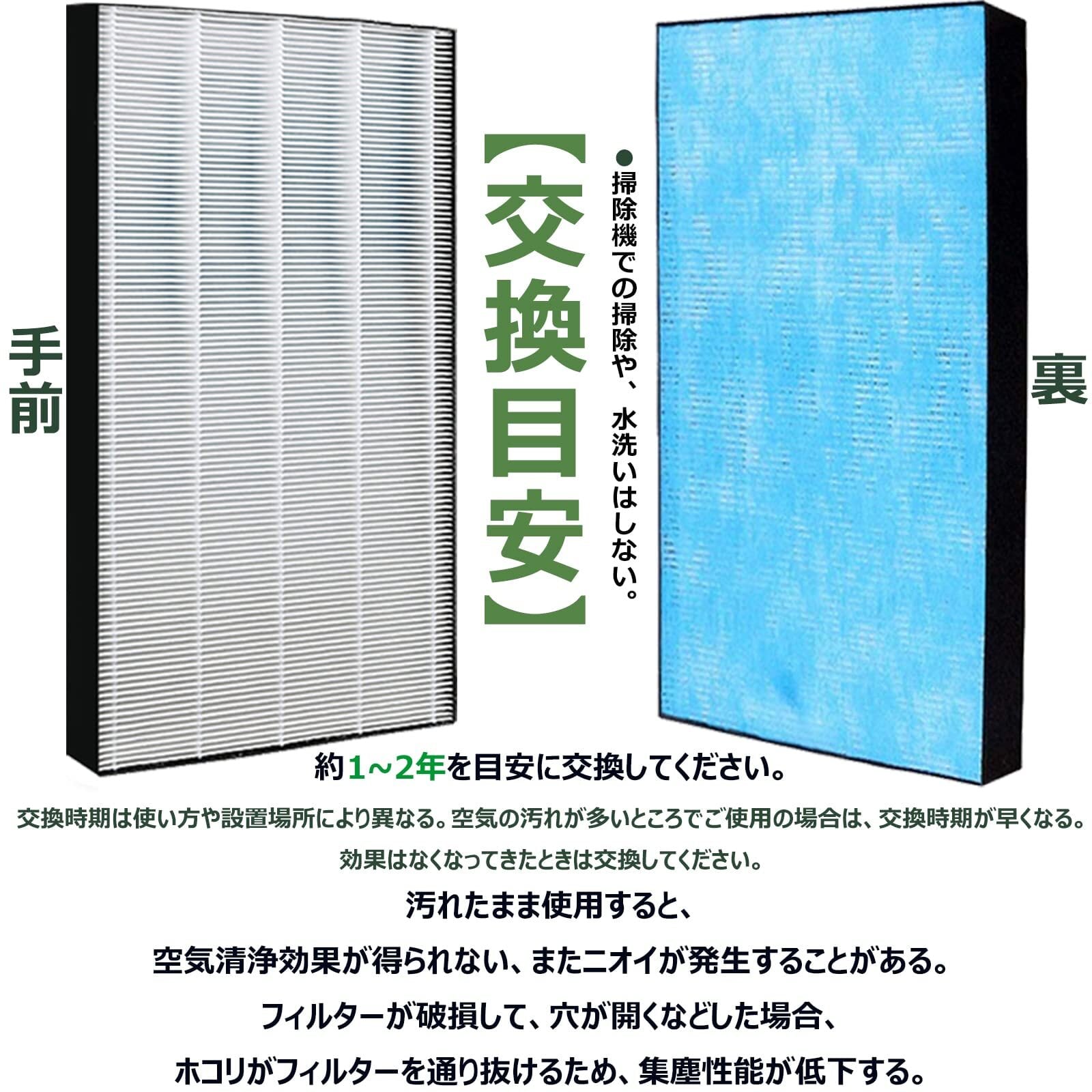 ■(使用時間や設置場所により交換時期は異なるが、汚れが目立ち効果が落ちているようでしたら、速やかに交換することをオススメ。)