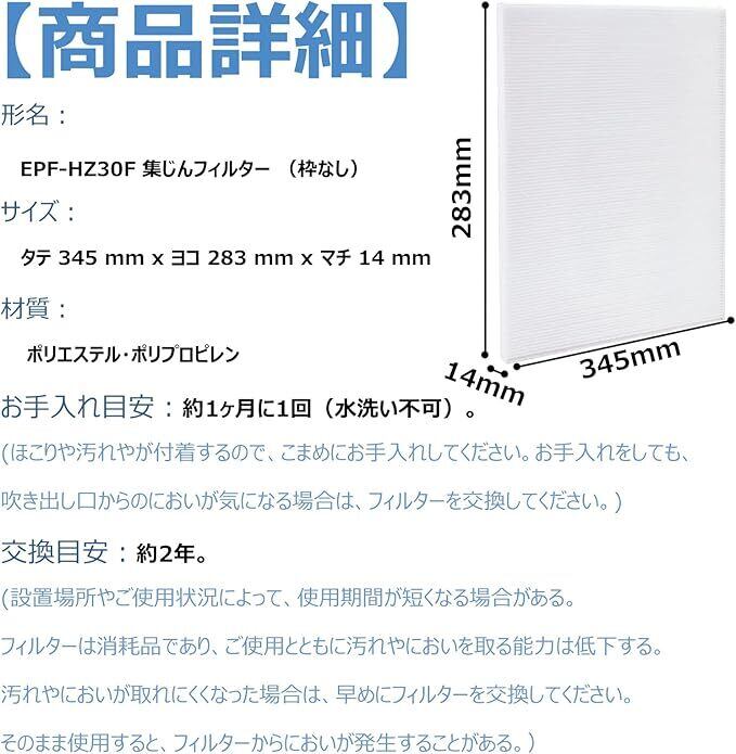 \★今だけ\最大20%OFFクーポン★/ EPF-HZ30F 集塵フィルター フィルター 空気清浄機 空気清浄機交換用フィルター互換用 EP-HZ30 EP-JZ30 EP-KZ30 EP-LZ30 EP-MZ30 EP-NZ30 EP-BKZ30 EP-H300対応 集じんフィルター 集塵【互換品】一枚入り | ベスター本舗