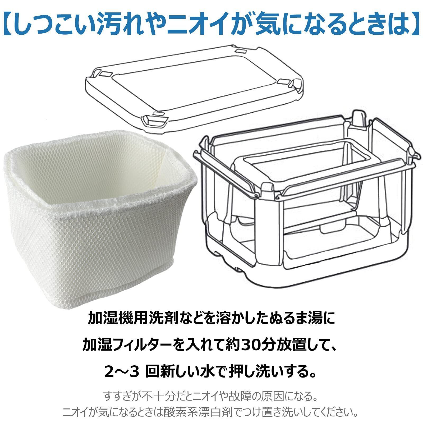 ●加湿機用洗剤などを溶かしたぬるま湯に加湿フィルターを入れて約30分放置して、2~3 回新しい水で押し洗いする。