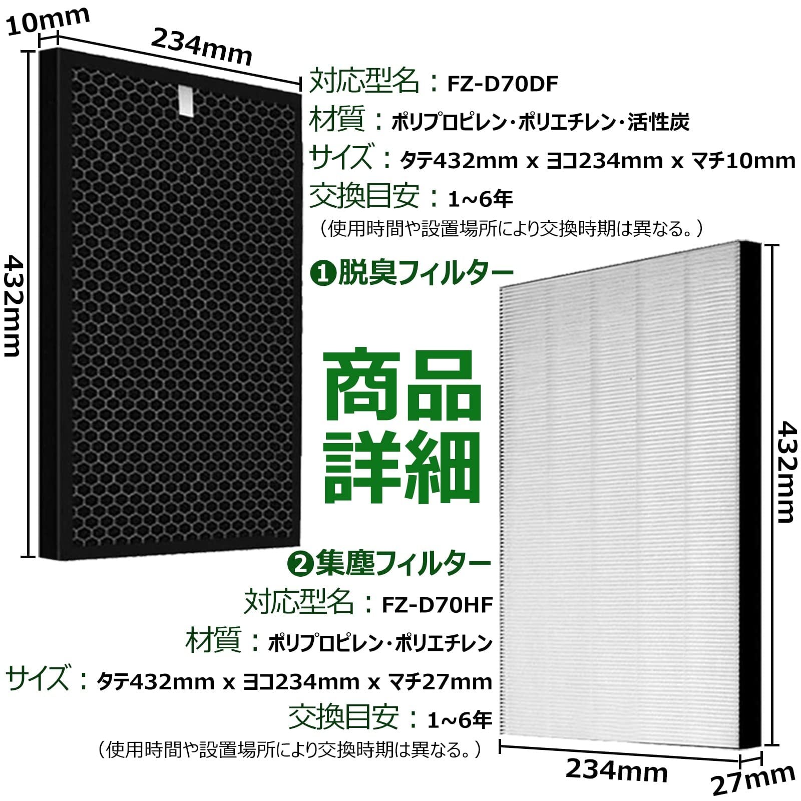 \★今だけ\最大20%OFFクーポン★/ FZ-D70HF 集じんフィルター と 脱臭フィルター FZ-D70DF HEPAフィルター 加湿空気清浄機用 KC-700Y6 KC-D70 KC-E70 KC-700Y7 KC-70E2 KC-70TH1 KC-70E1 KC-E70A1 交換用 1セット入り | ベスター本舗