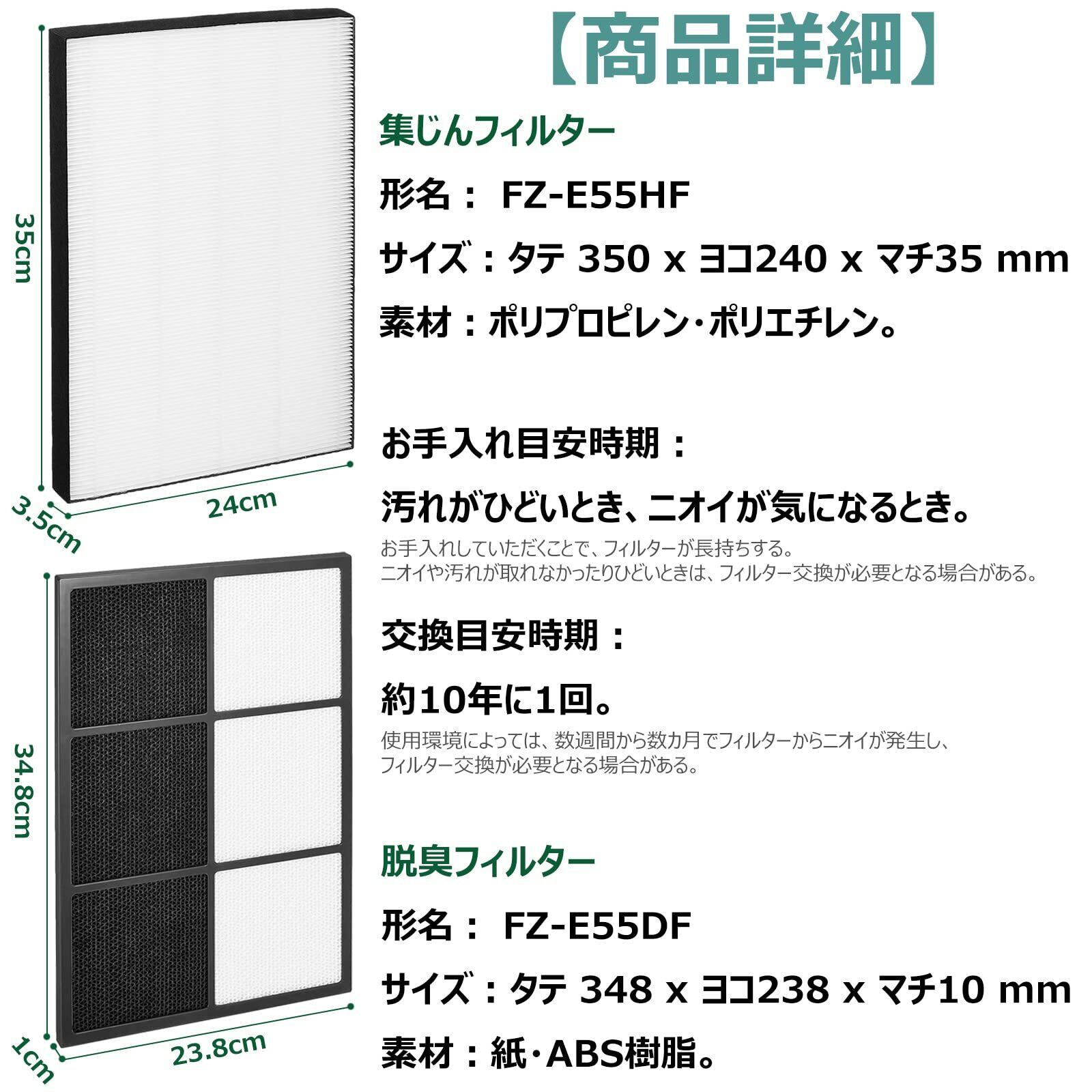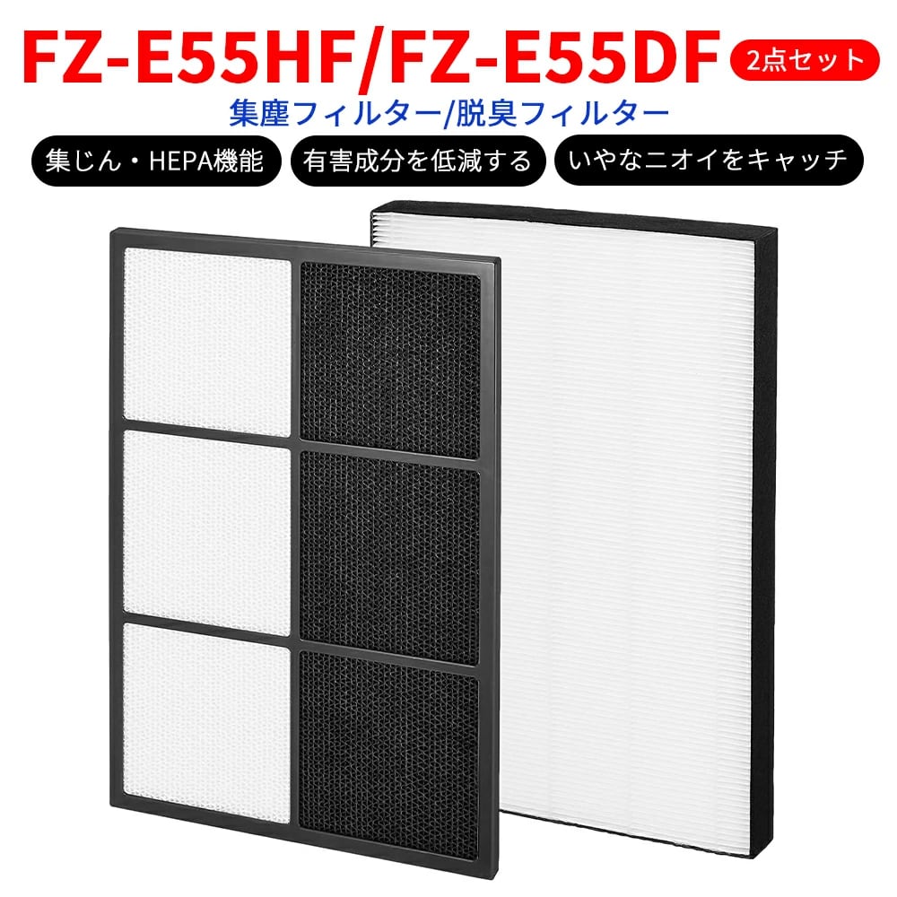\★今だけ\最大20%OFFクーポン★/ FZ-E55HF 集塵フィルター FZ-E55DF 脱臭 フィルター KI-FX55 KI-EX55 フィルター 空気清浄機 KI-EX55-T KI-EX55-W KI-FX55-W KI-FX55-T対応 集じんフィルター hepaフィルター 加湿空気清浄機フィルター【互換品】2枚セット | ベスター本舗