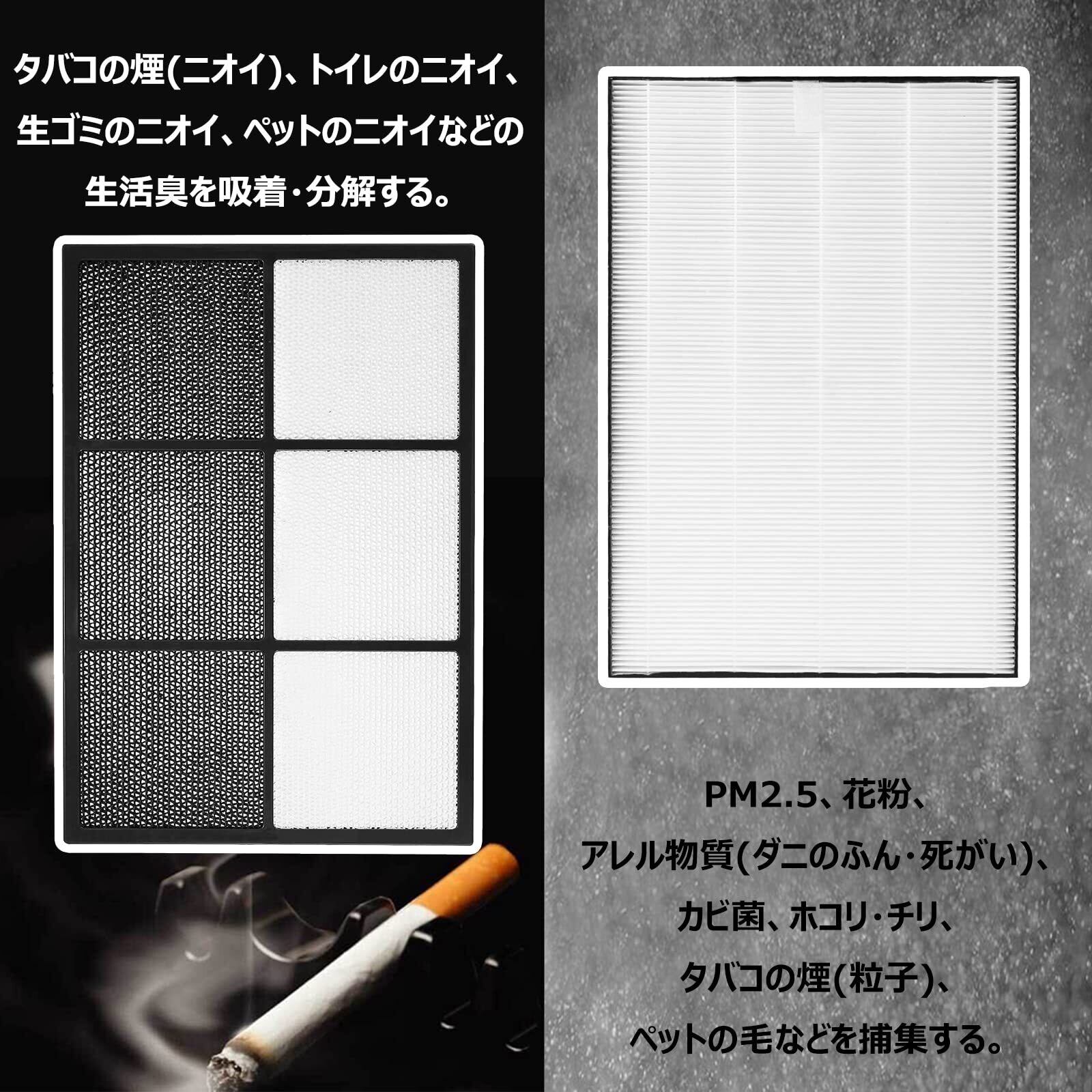 ・ FZ-E55DF 脱臭フィルター はタバコの煙(ニオイ)、トイレのニオイ、生ゴミのニオイ、ペットのニオイなどの生活臭を吸着・分解する。
