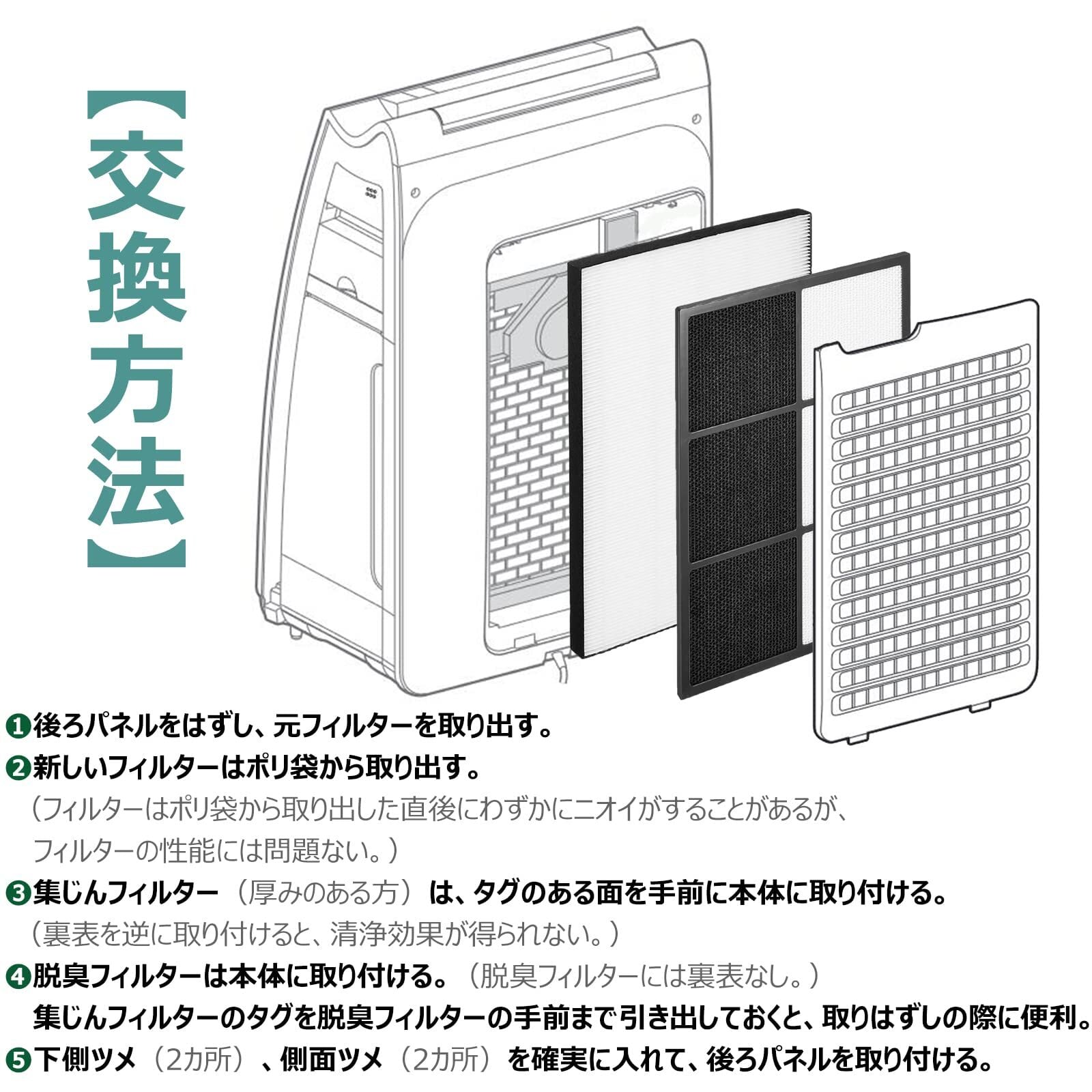汚れがひどいとき、ニオイが気になるとき。集じんフィルターはタグのある面だけ、脱臭フィルターは両面、掃除機などでフィルター表面についたホコリを取り除く。ニオイや汚れが取れなかったりひどいときは、フィルター交換が必要となる場合がある。