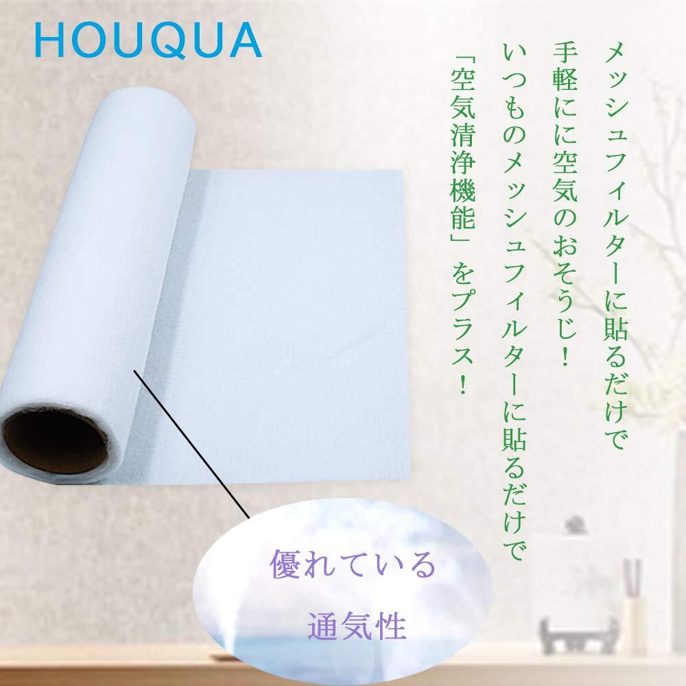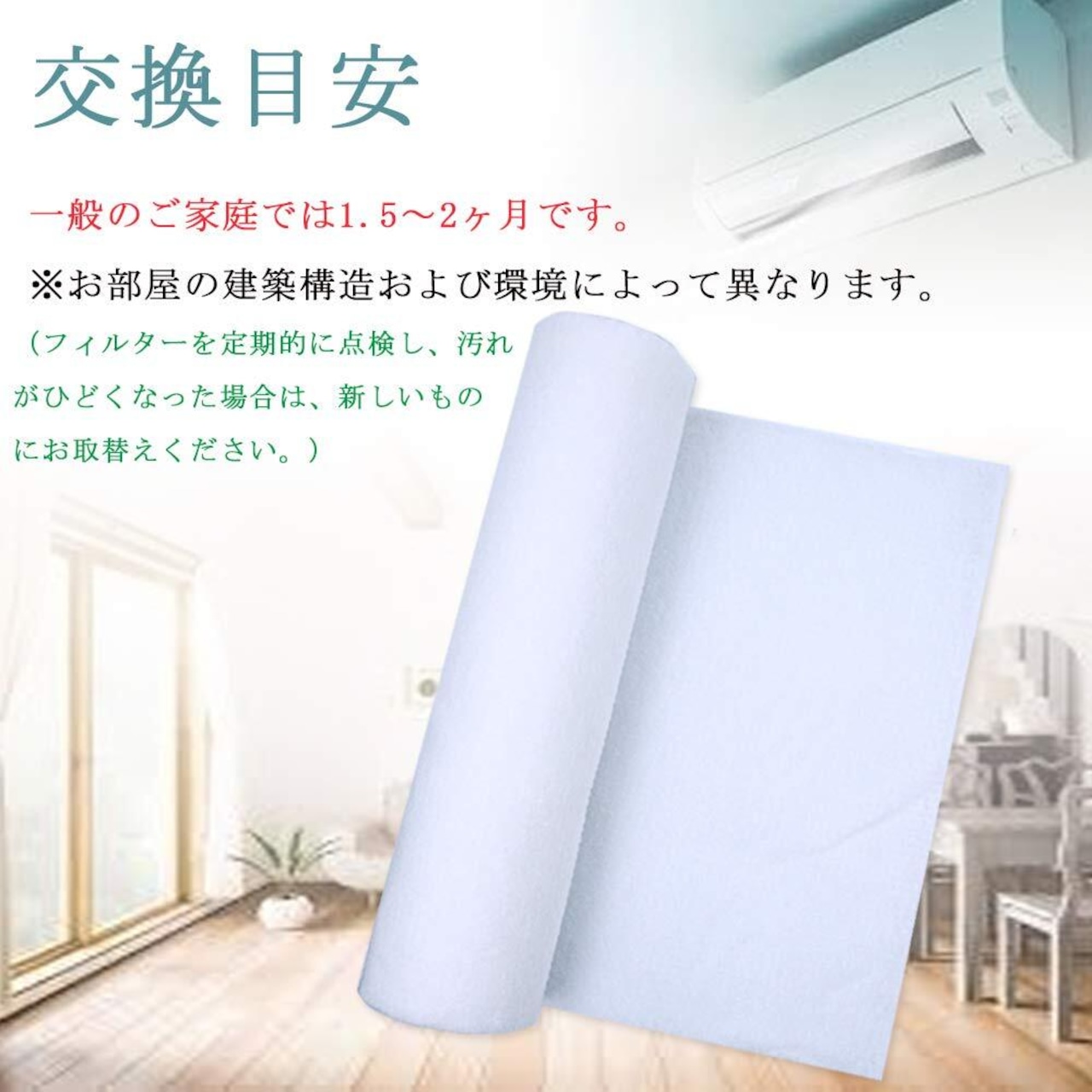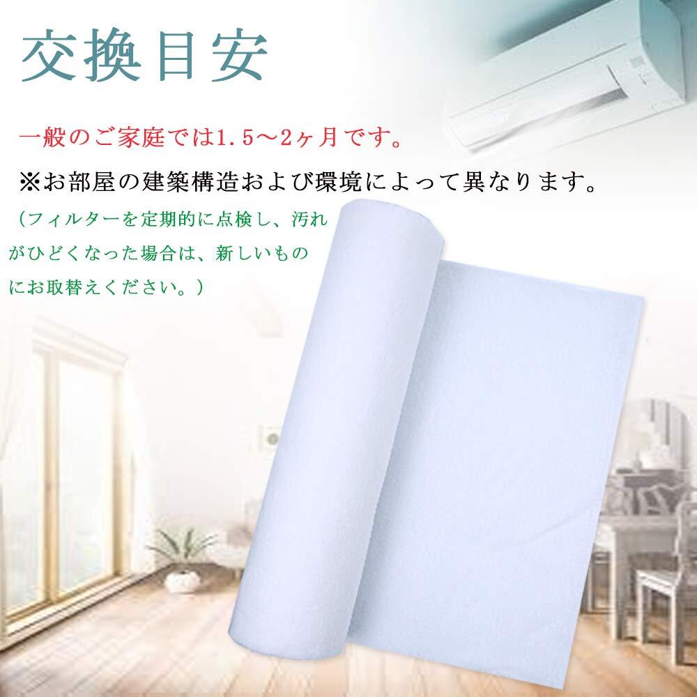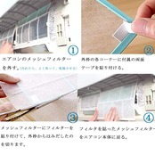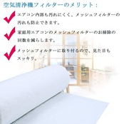 エアコン用空気清浄フィルターは帯電した繊維で作られ、繊維構造がふんわりしており、お使いになるエアコンの機種に合わせてサイズを調整してからカットし、メッシュフィルターに貼るだけで室内の空気を清浄化します。