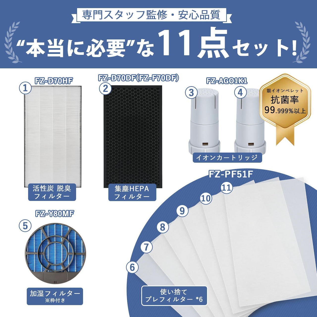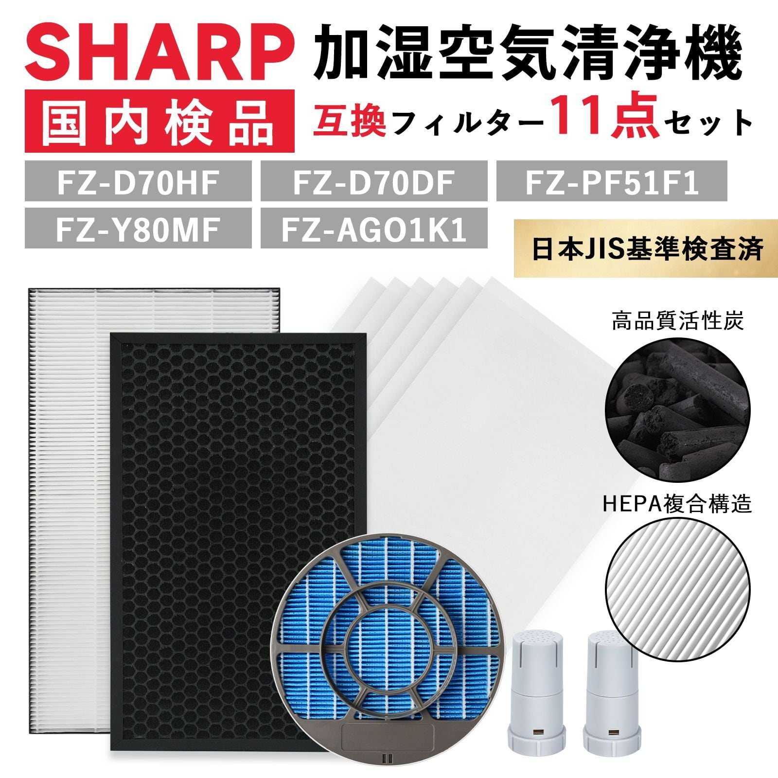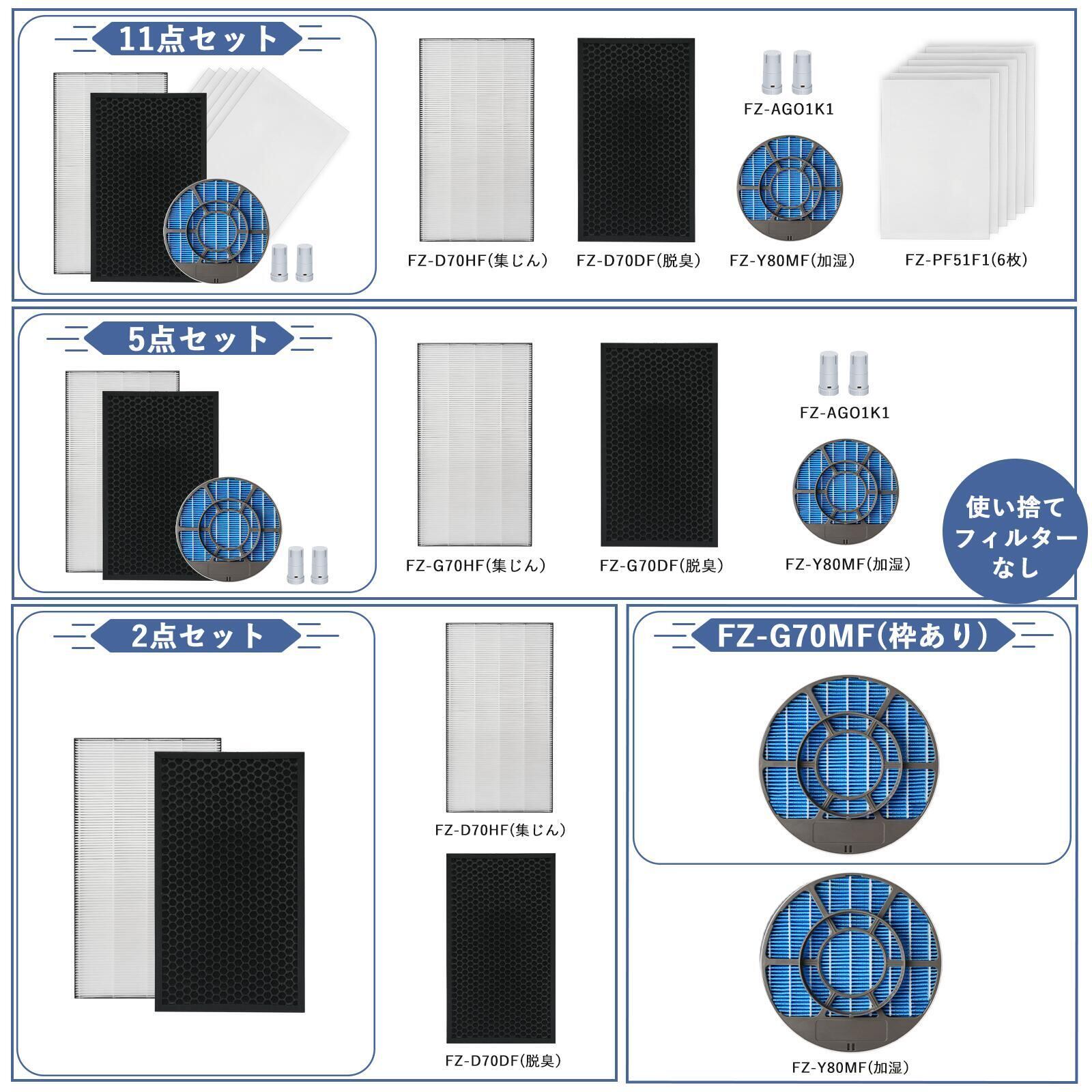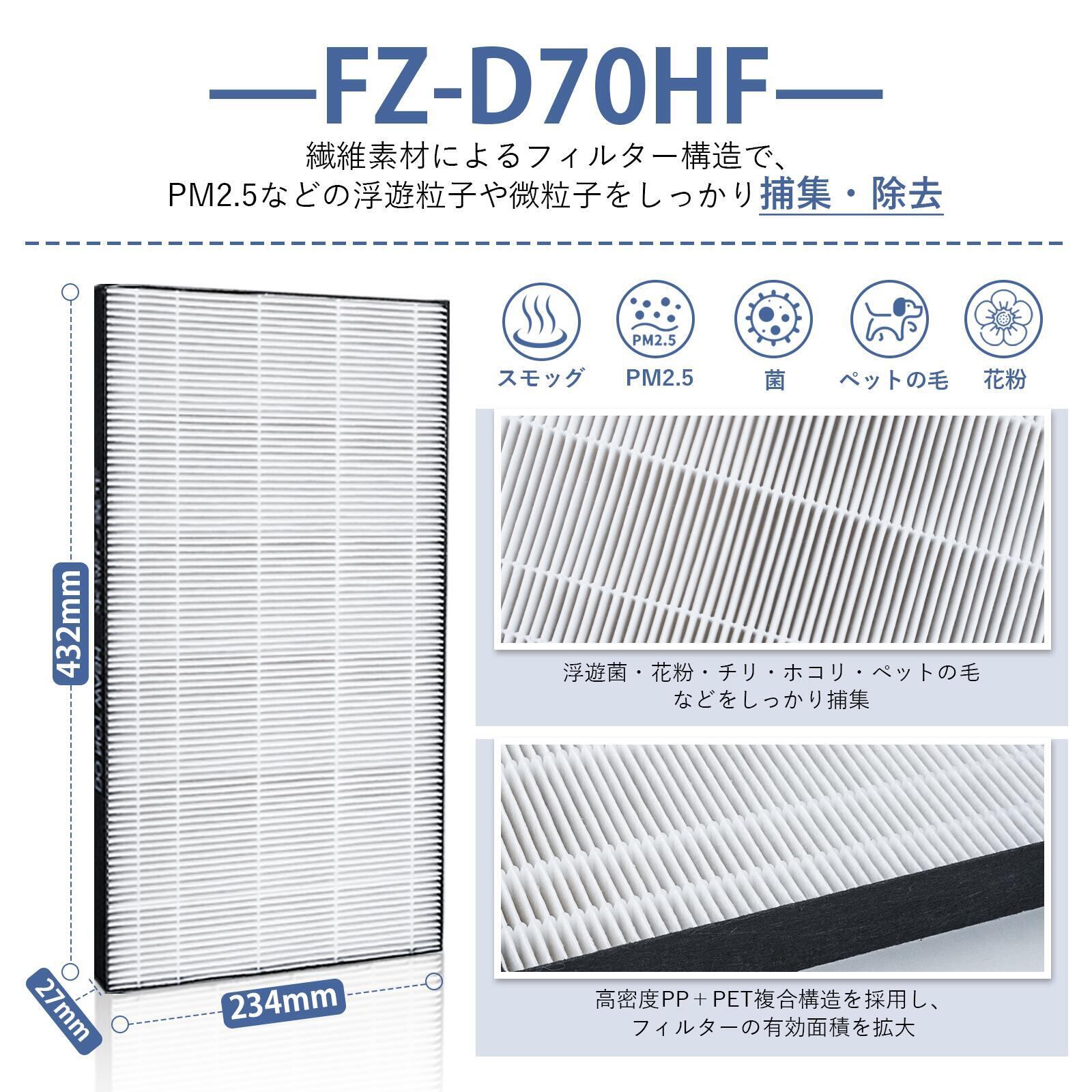 FZ-D70HF FZ-D70DF FZ-F70DF FZ-Y80MF シャープ互換 空気清浄機 フィルター FZ-D70HF FZ-D70DF FZ-Y80MF 枠付き FZ-PF51F1 加湿空気清浄機用 脱臭フィルター 集じんフィルター FZ-AG01k1 イオンカートリッジ 【互換品】 | ベスター本舗