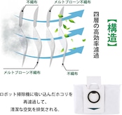 ロボット掃除機で吸い込んだホコリをしっかり濾過し、自動ゴミ収集スタンドにセットされた紙パック内に集じんします。空気のみが紙パックを通過して排気されます。