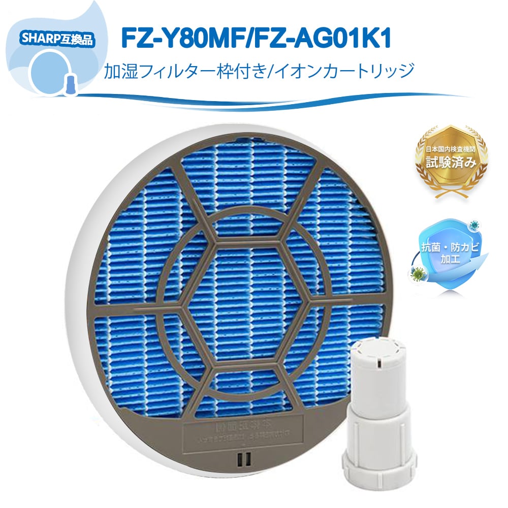 シャープ互換 FZ-Y80MF 互換フィルター 枠付き 加湿フィルター FZ-AG01K1 イオンカートリッジ 空気清浄機 フィルター SHARP互換 加湿フィルター セット 防カビ 防菌 加湿空気清浄機用 Ag KC-F50 / KC-F50-W / KC-G50 など対応 互換品